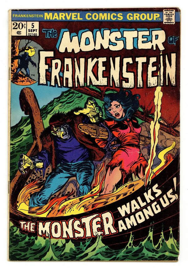 The monster rescues and befriends a beautiful woman in "The Monster Walks Among Us!" Script by Gary Friedrich, pencils by Mike Ploog, inks by John Verpoorten. Ploog cover. Cover price $0.20.