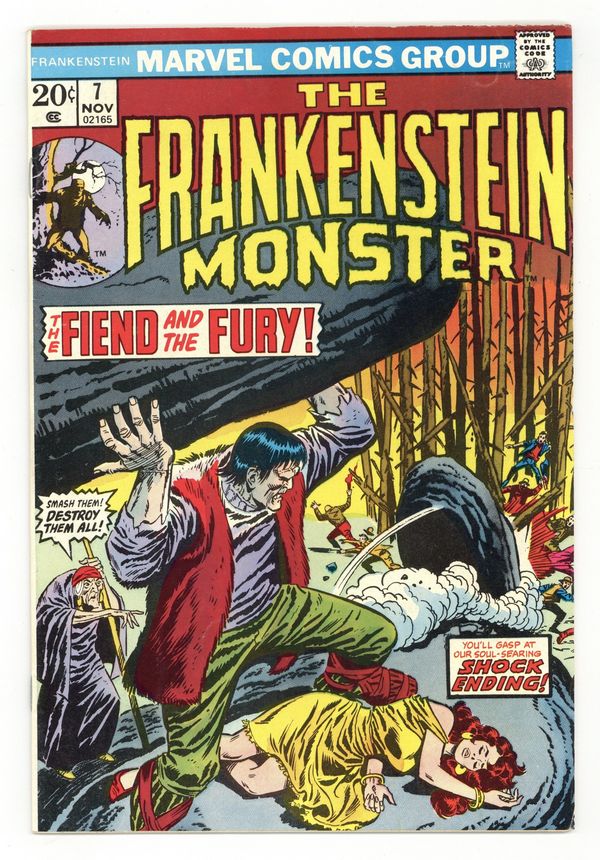 Cover pencils by John Buscema, inks by Frank Giacoia. The Fury of a Fiend!, script by Gary Friedrich, pencils by John Buscema, inks by John Verpoorten; The Frankenstein Monster joins a group of gypsy entertainers and is tricked into helping one of them return Dracula to life. The Executioner!, pencils by Dunling, inks by Grogar; Francis Tourneau is an executioner to King Louis XVI of France in the year 1769; He labors to find a more efficient means of executing prisoners; A physician named Joseph-Ignace Guillotin provides him designs for a mechanized decapitation device. 36 pgs., full color. $0.20. Cover price $0.20.