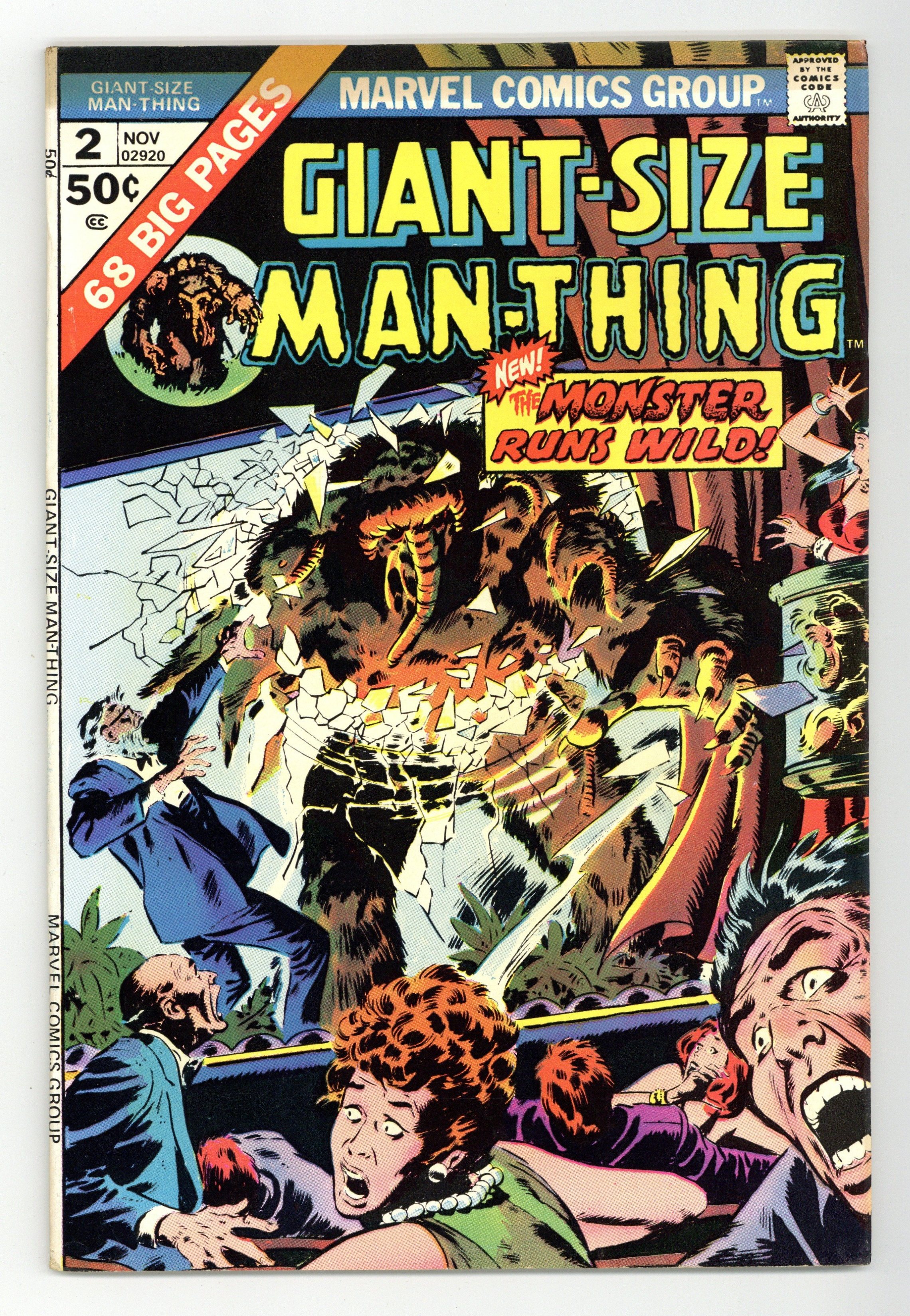 $17.99Cover art by John Buscema. "Of Monsters and Men!", script by Steve Gerber, pencils by John Buscema, inks by Klaus Janson; Man-Thing goes berserk in New York City. "I Learned the Dread Secret of the Blip!" (reprinted from Tales to Astonish #15), pencils by Jack Kirby, inks by Dick Ayers; A power drain and radar anomaly is traced to a creature made of electricity hiding in a cave; It claims to be a friendly visitor, but humans attack it and it flees into space. "He Stalks By Night!" (reprinted from Strange Tales #51), art by Bob Powell; A planter in India is nearly convinced of superstitions concerning were-tigers after he slays its mate, but it turns out to be a plot by one of the locals to seize control of the village. "I Dared Enter the Forbidden World!" (reprinted from Tales to Astonish #15), art by Don Heck; A white game hunter finds the legendary elephant's graveyard, hoping to make a fortune in ivory; He discovers that elephants were introduced to Earth by Martians, who use the graveyard as a gathering point for the ivory, and won't let him leave. 68 pgs., full color. Cover price $0.50.