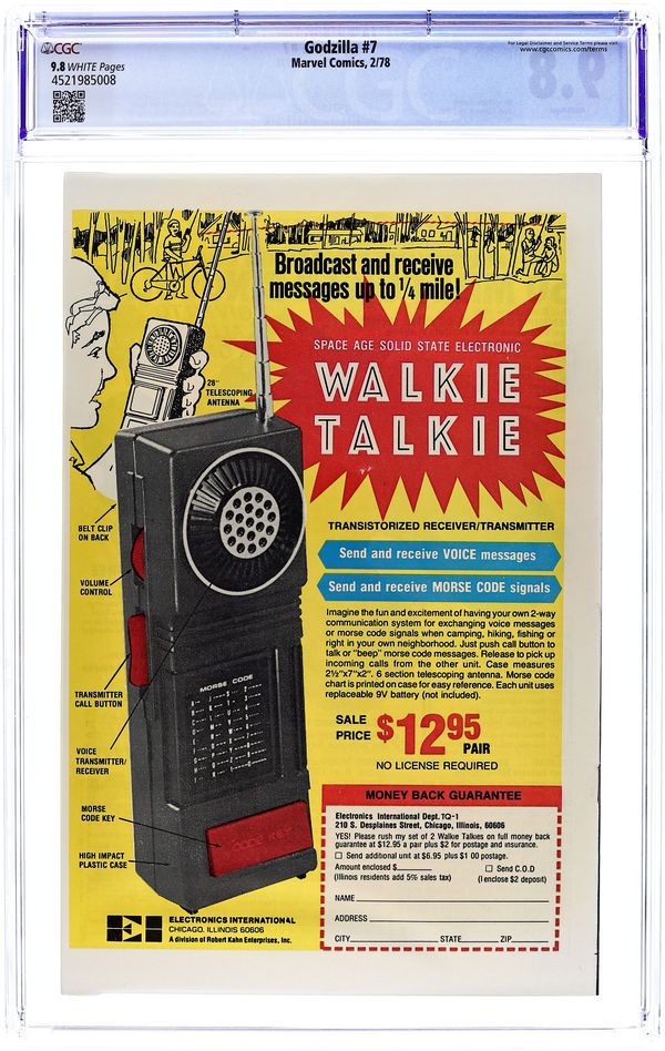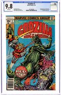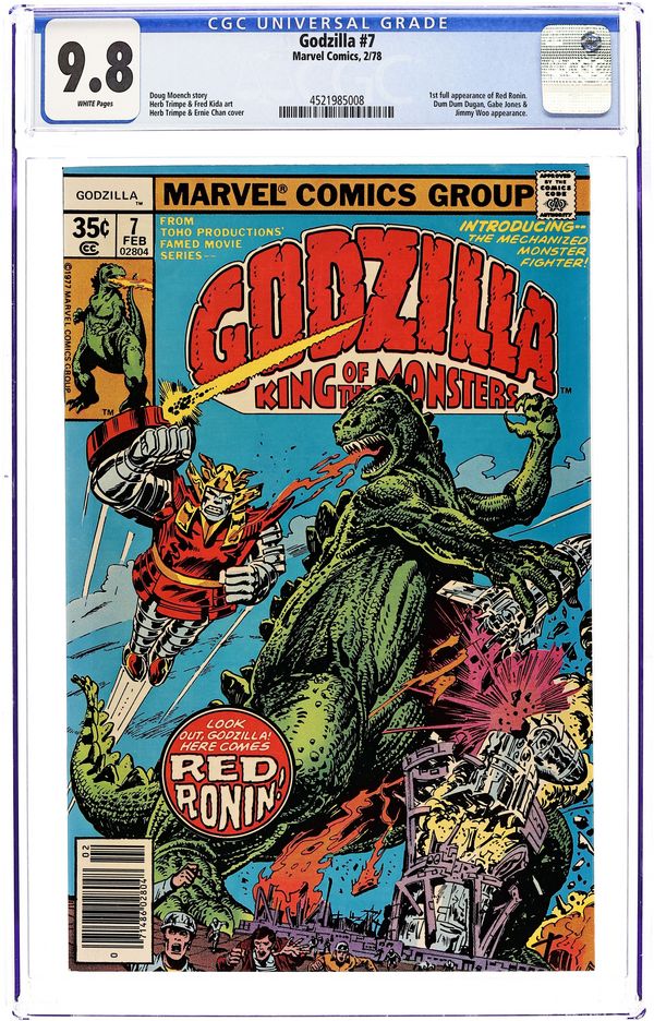 "Birth of a Warrior!" Part 2 of 3. Story by Doug Moench. Art by Herb Trimpe and Fred Kida. Godzilla has just awoken from his gas induced sleep and he's not happy. Is there nothing that can stop the monster's rampage. Maybe the giant robot known as Red Ronin, piloted by the young Rob Takiguchi, can. 1st appearance of Red Ronin. Cover price $0.35.