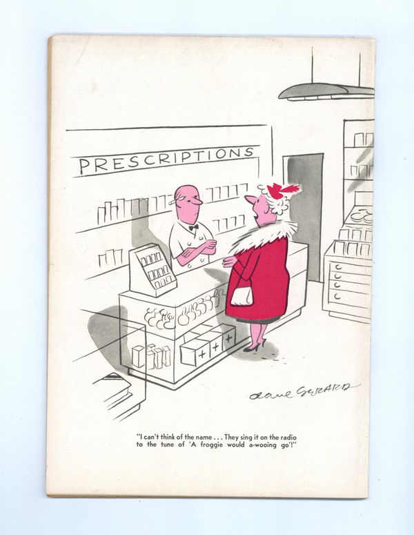 Humor Magazine featuring jokes and cartoons. Cartoons by Stan Fine, George Wolfe, Frank Beaven, Jeff Keate, Bill Yates, Henry Boltinoff, Reamer Keller, Bo Brown, George Crenshaw, and others. 7 1/4-in. x 10 1/4-in., 64 Pages, B&W. Cover price $0.25.