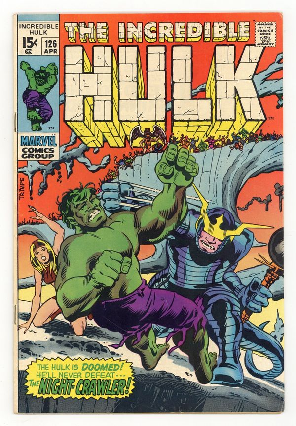 Tags: Defenders Beginnings (Marvel) (part 3), Dr Strange Namor Hulk x-over (part 3), Marvel Legacy Numbering: Hulk (part 126), Doctor Strange, Hulk$21.00Part 3 of 3 - Story continues from Sub-Mariner 22. Cover art by Herb Trimpe. Where Stalks the Night-Crawler!, script by Roy Thomas, art by Herb Trimpe; Exhausted after his battle with the Absorbing Man, Bruce Banner is taken to a mysterious mansion where he becomes the target of an evil cult who desires to bring the Undying Ones to earth; Banner is sent to another dimension where he turns into the Hulk and faces the Night-Crawler; Destroying the Night-Crawler's realm, Hulk and his foe are teleported to the realm of the Undying Ones where Night-Crawler fights his ancient foes while Hulk rescues a trapped Dr. Strange and the two return to earth. 36 pgs. $0.15. NOTE: This is the three-part tale that saw the beginnings of the partnership that would lead Doctor Strange, Sub-Mariner, and the Hulk to becoming Marvel's Defenders. - Odinson, Lone Star Comics Archivist Cover price $0.15.