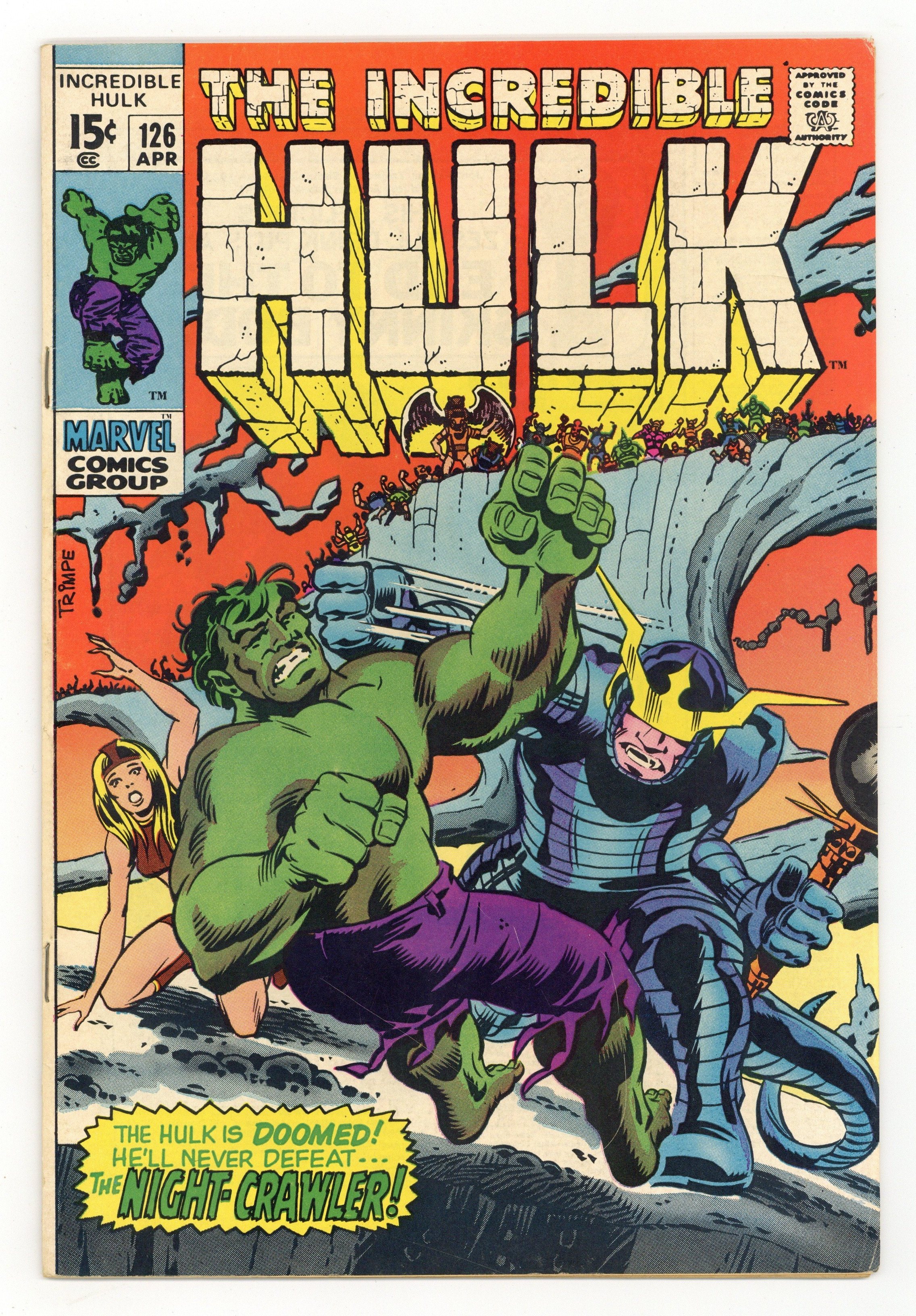 Tags: Defenders Beginnings (Marvel) (part 3), Dr Strange Namor Hulk x-over (part 3), Marvel Legacy Numbering: Hulk (part 126), Doctor Strange, Hulk$23.50Part 3 of 3 - Story continues from Sub-Mariner 22. Cover art by Herb Trimpe. Where Stalks the Night-Crawler!, script by Roy Thomas, art by Herb Trimpe; Exhausted after his battle with the Absorbing Man, Bruce Banner is taken to a mysterious mansion where he becomes the target of an evil cult who desires to bring the Undying Ones to earth; Banner is sent to another dimension where he turns into the Hulk and faces the Night-Crawler; Destroying the Night-Crawler's realm, Hulk and his foe are teleported to the realm of the Undying Ones where Night-Crawler fights his ancient foes while Hulk rescues a trapped Dr. Strange and the two return to earth. 36 pgs. $0.15. NOTE: This is the three-part tale that saw the beginnings of the partnership that would lead Doctor Strange, Sub-Mariner, and the Hulk to becoming Marvel's Defenders. - Odinson, Lone Star Comics Archivist Cover price $0.15.