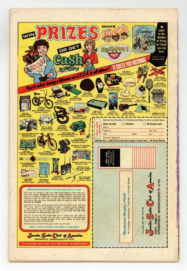 First appearance of Wolverine (cameo last panel). Cover art by Herb Trimpe. And the Wind Howls...Wendigo!, script by Len Wein, pencils by Herb Trimpe, inks by Jack Abel; Hulk is in Canada looking for some peace and quiet when he is mysteriously drawn to a cave inhabited by the sister of the man who became the Wendigo; Marie and Georges plan on transferring the power of the Wendigo to the Hulk, thus restorin Paul Cartier to his normal life; Marie's magic isn't strong enough, however, and just as Wendigo shows up, the Hulk wakes up from his magical slumber and the two battle; The Canadian government gets involved and sends in their own agent to take care of a recent Hulk sighting, the mutant known as Wolverine. Marvel Value Stamp Series A (Cyclops). 36 pgs. $0.25. Cover price $0.25.
