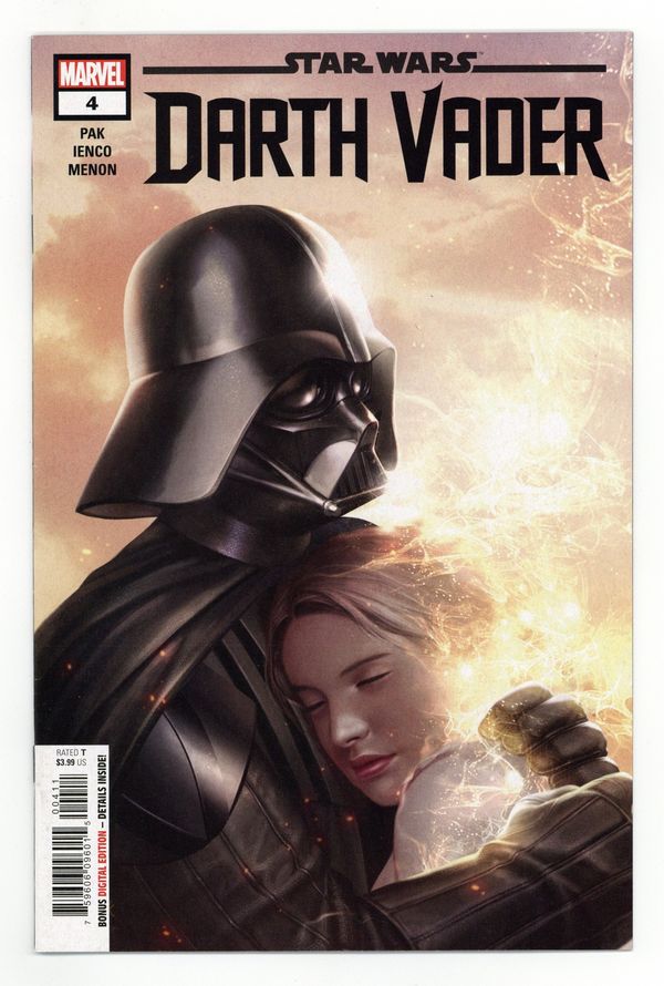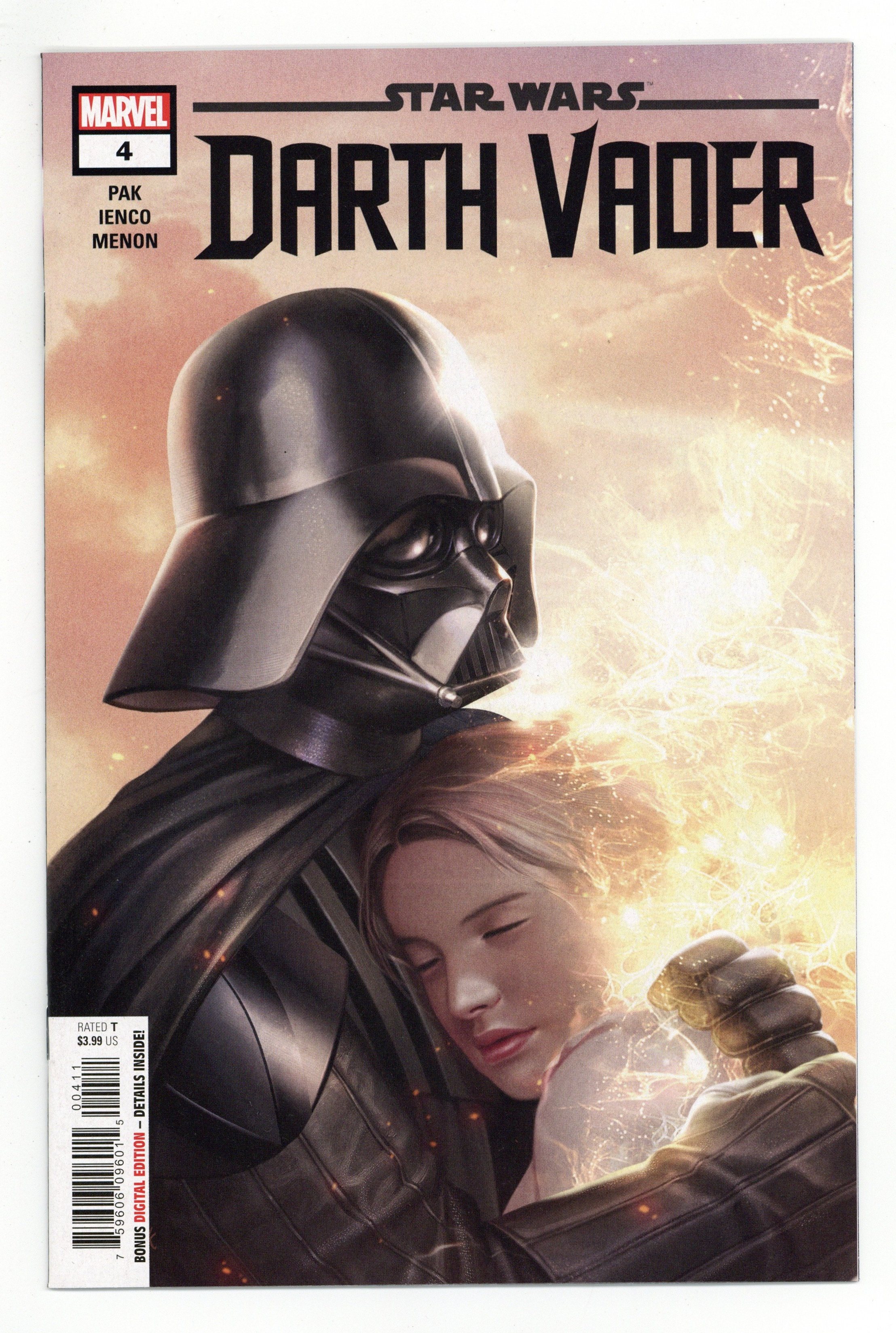 Tags: Star Wars$20.00Written by Greg Pak. Art by Raffaele Ienco. Cover by In-Hyuk Lee. WHO HUNTS THE HUNTER? DARTH VADER continues his terrifying quest for vengeance against everyone who hid the existence of his son from him. But on NABOO, the DARK LORD OF THE SITH faces a deadly new challenge as his focus turns from LUKE to PADMÉ, the wife of the man Vader used to be. And what secrets lie in the tomb of PADMÉ AMIDALA? 36 pages, full color. Rated T Cover price $3.99.