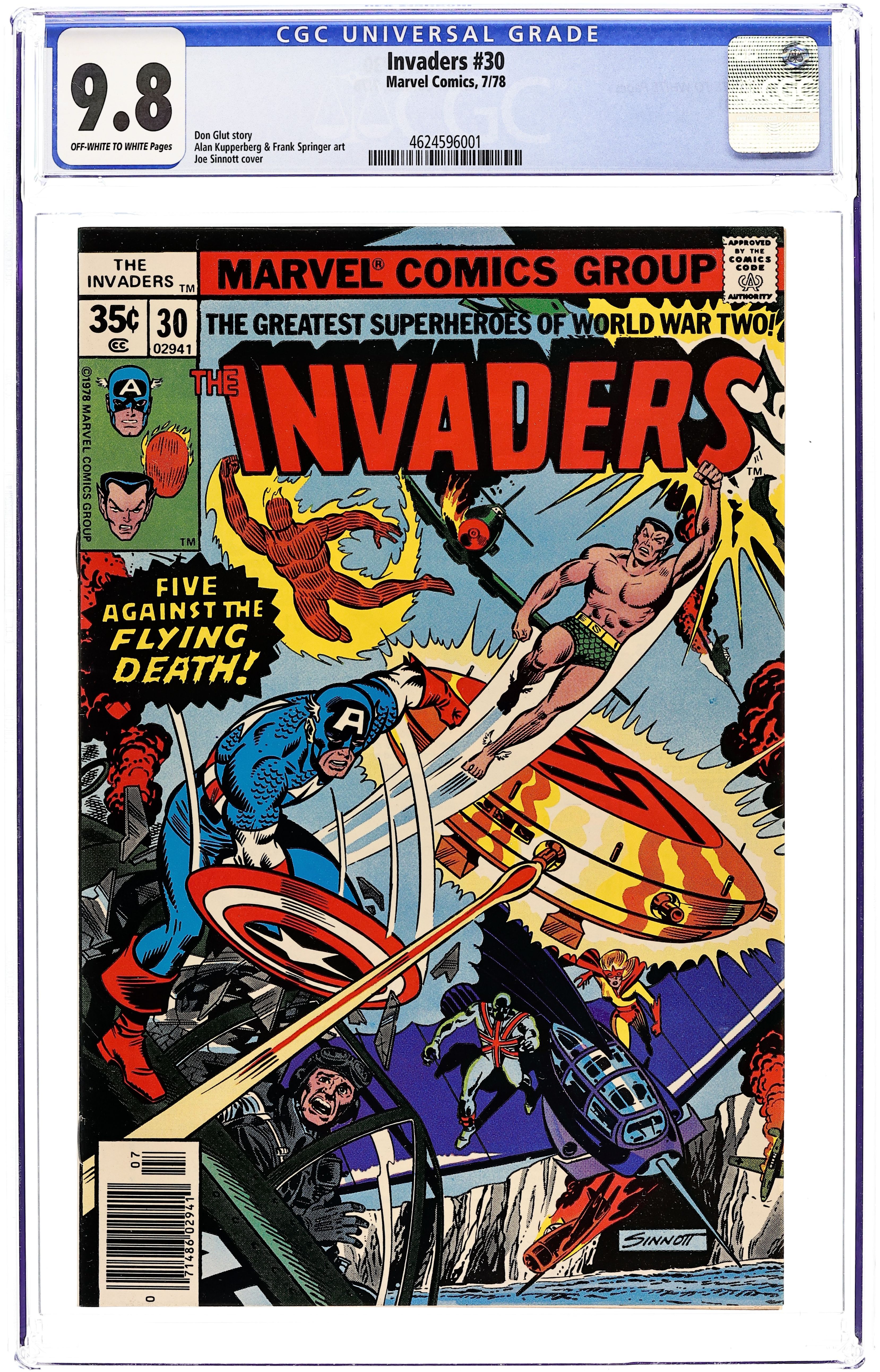 Part 2 of 2 - "Five Against the Flying Death!" Written by Don Glut. Art by Alan Kupperberg and Frank Springer. The Invaders are all that stands between the United Kingdom and the sinister Teutonic Knight and Der Fliegentod, the flying Death Machine! 32 pages, FC. Cover price $0.35.