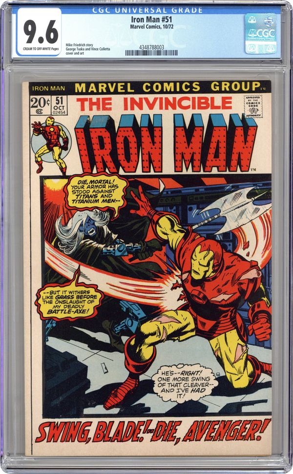"Now Stalks the Cyborg-Sinister!" Story by Mike Friedrich. Art by George Tuska and Vince Colletta. The Cyborg-Sinister attacks Stark Industries in Long Island! Iron Man quickly arrives on the scene for a one-on-one fight to the death! Will Marianne's frightening vision come true? Meanwhile, Tony and Marianne have a big argument and call off their engagement. 32 pages Cover price $0.20.