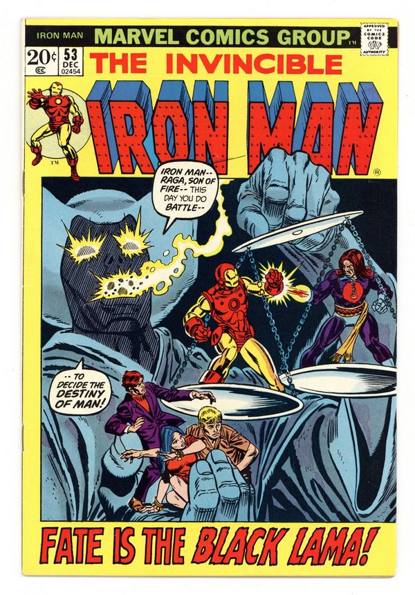 Tags: Marvel Legacy Numbering: Iron Man (part 53), Iron Man$20.50Part Jim Starlin art. "The Black Lama!" Story by Mike Friedrich. Art by George Tuska, Jim Starlin, and Vince Colletta. Cover by Gil Kane. The golden avenger has two missions in this issue: first, prevent a lava flow from destroying a Southern California town, and then second, stop Raga, the Son of Fire, from killing two local civilians. Can Iron Man successfully achieve both objectives? And where does the mysterious Black Lama fit into the story? First appearance of the Black Lama. (Note: The Black Lama returns in Iron Man 71 to set up the War of the Super-Villains.) 32 pages Cover price $0.20.