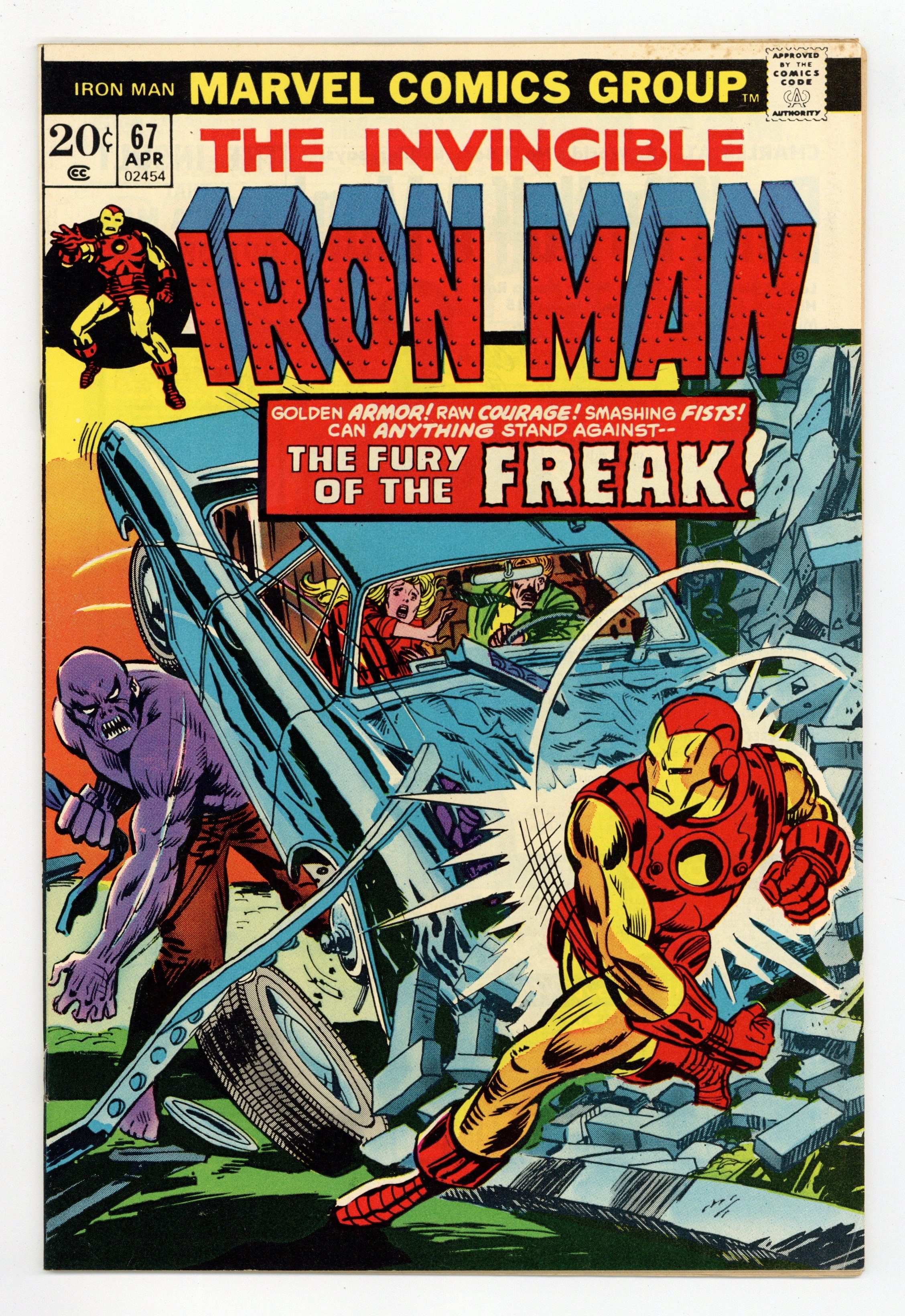 Tags: Marvel Legacy Numbering: Iron Man (part 67), Iron Man$6.30"Return of the Freak!" Story by Mike Friedrich. Art by George Tuska and Mike Esposito. Cover by Gil Kane and Mike Esposito. Eddie March is near death after his heroic effort to stop Dr. Spectrum in the previous issue. Tony Stark and Dr. Don Blake use the enervator to try to save Eddie's life, but the procedure goes awry and Eddie becomes the Freak! Now Iron Man has to stop his friend's rampage! (Note: The letters page contains Marvel Value Stamp series A #80 the Ghost Rider.) 32 pages Cover price $0.20.