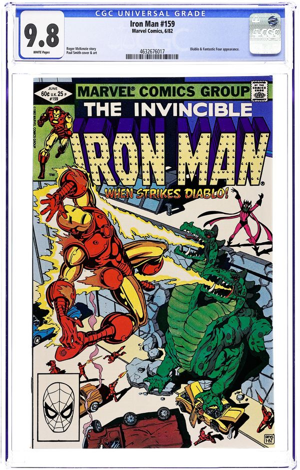 Direct Edition. "When Strikes Diablo" Story by Roger McKenzie. Art by Paul Smith. Stark International has hired a new employee who turns out to be a super villain with amnesia. When Diablo regains his memory, he engages Iron Man in an all-out battle. Cameo appearance by the Fantastic Four. (Note: This issue contains a full page ad for Marvel's first limited series: Marvel Super Hero Contest of Champions.) 32 pages Cover price $0.60.