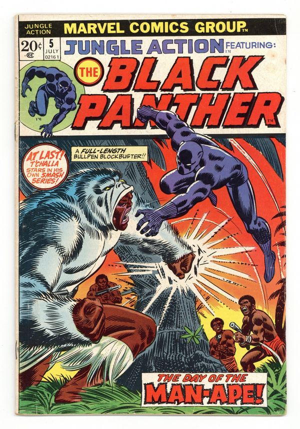 Tags: Black Panther$27.00Black Panther stories begin. Cover art by John Romita. The Monarch and the Man-Ape! (reprinted from Avengers 62), script by Roy Thomas, pencils by John Buscema, inks by George Klein; When the Black Panther and his fellow Avengers return to Wakanda they are captured by M'Baku, who plans to kill the Black Panther. Ad for The Ultimate Fan Club! FOOM! Friends Of Ol' Marvel. Monsters Unleashed ad. 36 pgs., full color. Cover price $0.20.