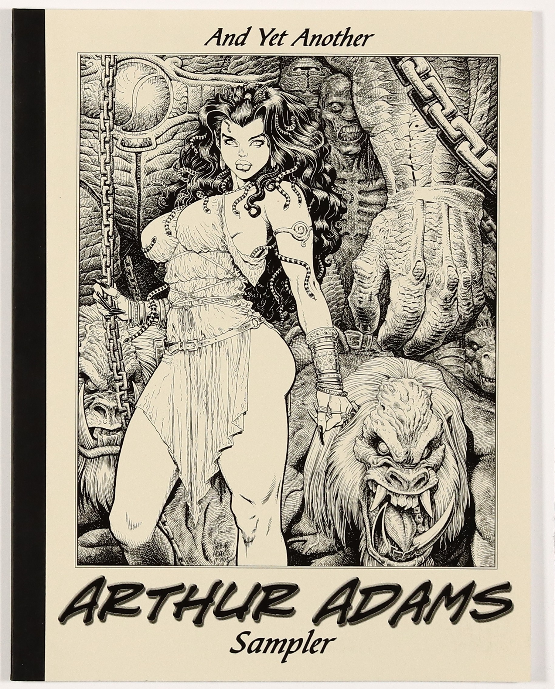 Volume 4 - "And Yet Another Arthur Adams Sampler!" - Signed by Arthur Adams. Arthur Adams Sampler #4, 2005. 50 pages of finished black and white commissions in Adams' inimitable exacting style. Original characters, DC and Marvel superheroes and more are featured. Softcover, 8 1/2-in. x 11-in., 50 pages, B&W.