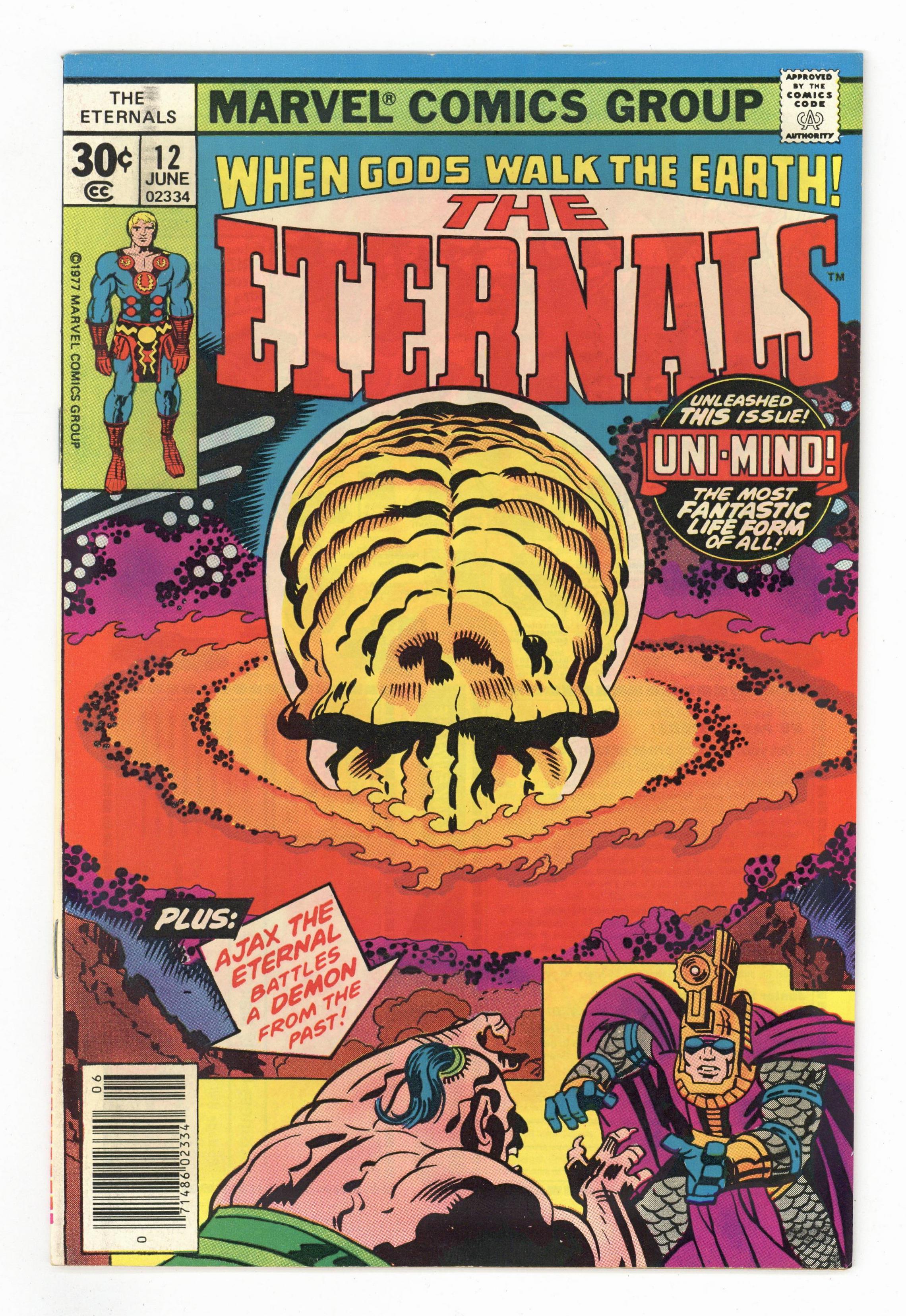 "Uni-Mind!" Written by Jack Kirby. Pencils by Jack Kirby. Inks by Mike Royer. Ajax the Eternal battles a demon from the past! Plus, unleashed in this issue, the most fantastic life form of all, the Uni-Mind! Note: First appearance of the Uni-Mind. Cover price $0.30.