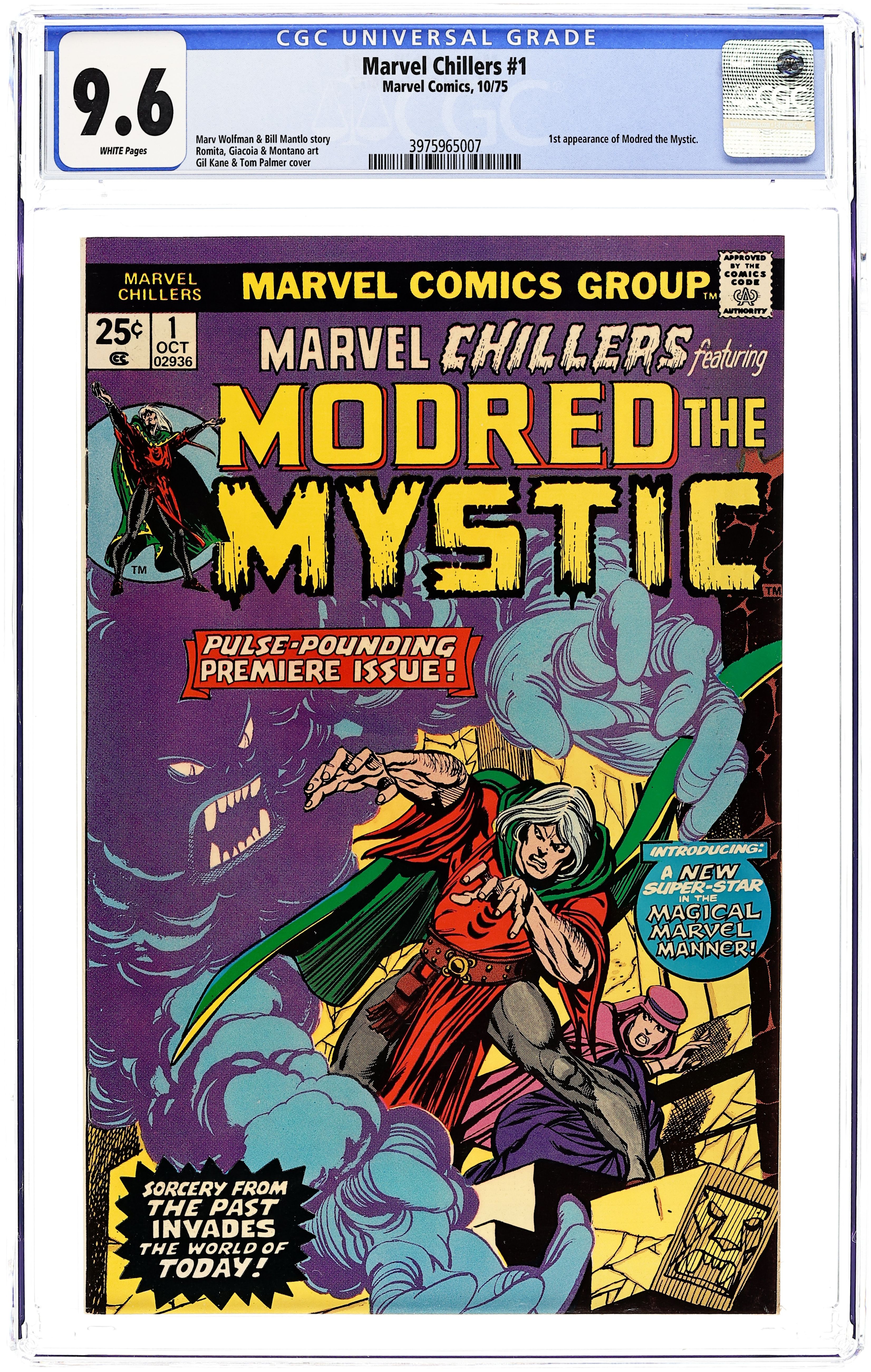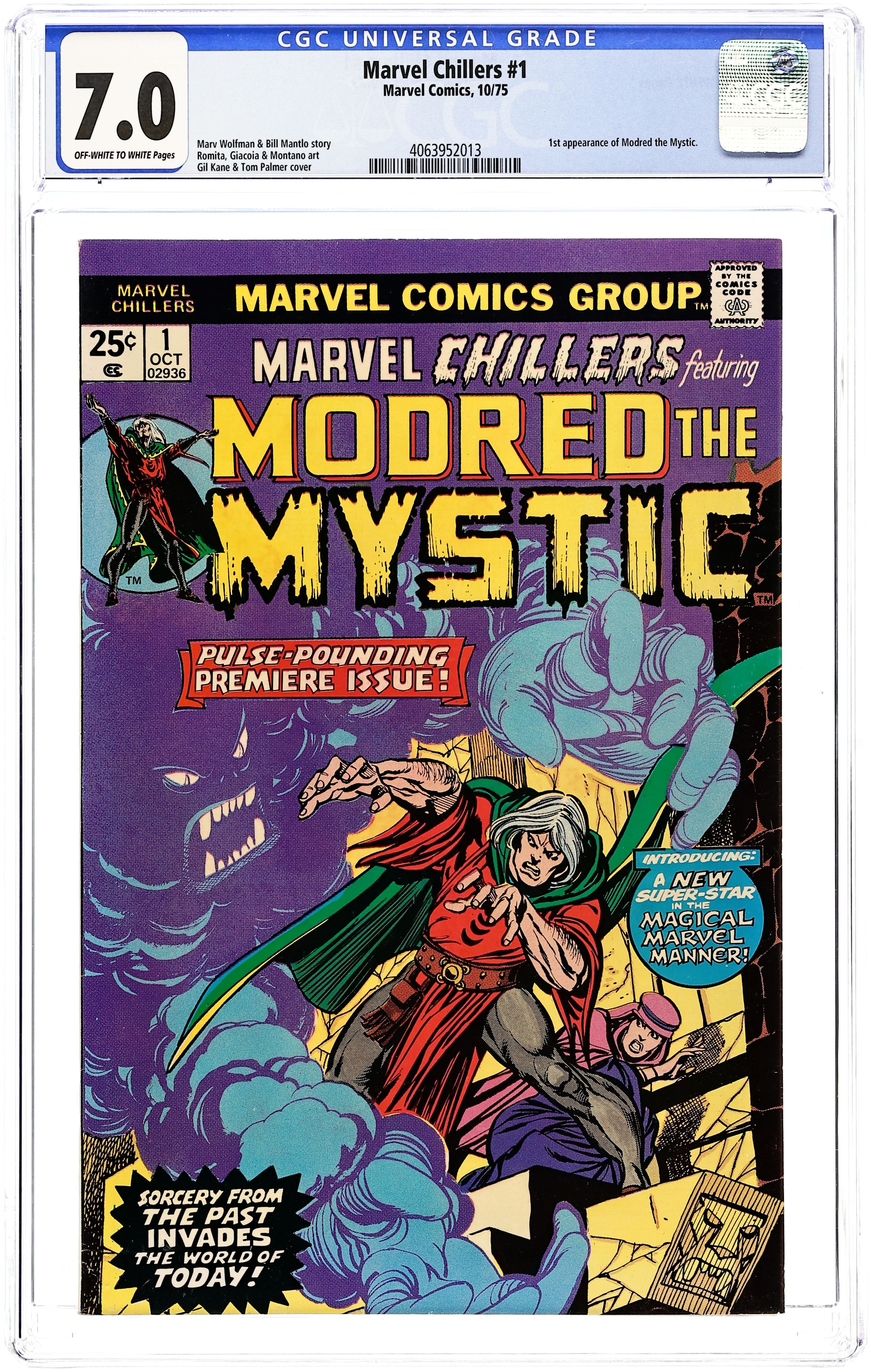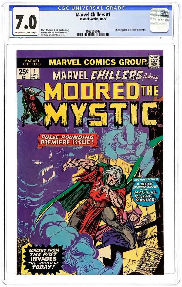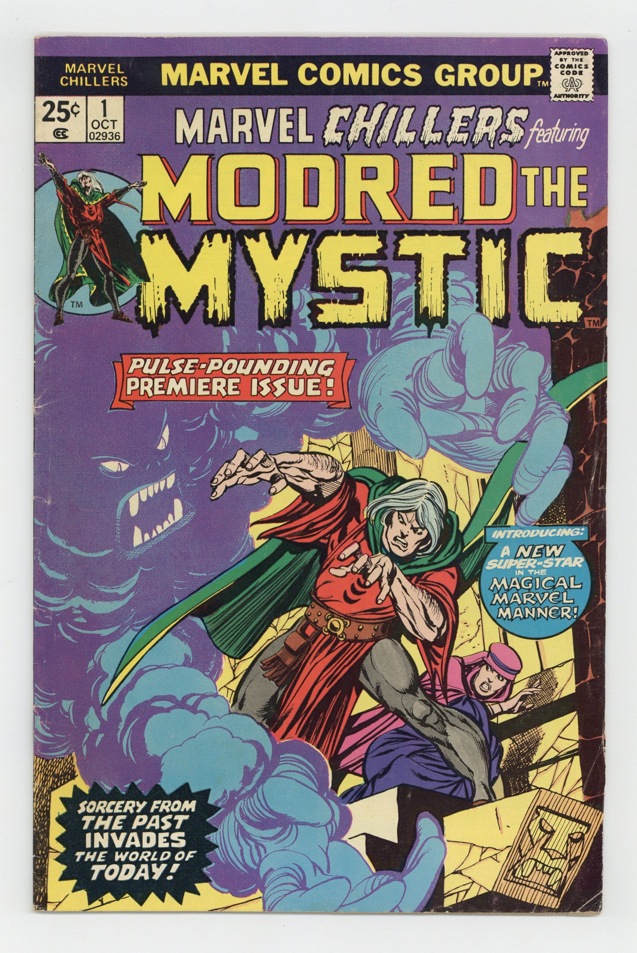 Ends Dec 8 8:49 PM CST Bid History 4 bids Current Bid $9 Your Secret Max Bid If you'd like to bid, please log in or register. Cover pencils by Gil Kane, inks by Tom Palmer. 1st appearance of Modred the Mystic in "Magic is Alive!", script by Marv Wolfman (inspiration) and Bill Mantlo, pencils by Ed Hannigan (page 1) and Yong Montano, inks by John Romita (page 1), Frank Giacoia (page 1), and Yong Montano; Janet Lyton and Grant Whittacker dig a tunnel to try and find the lost tower of Darkhold in England; They work through a storm, which washes out the supports of their tunnel, causing it to cave ; In the adjoining chamber they find what they believe is a perfectly preserved human body in a tomb dating back to the Dark Ages; The man comes to life, revealing himself to be Mordred, a magician's apprentice during the final years of Camelot. Reprint back-up story "It Happened in the Attic!" (from Mystical Tales 7), art by Frank Bolle; A man goes back in time and kills his ancestor. 36 pgs., full color. $0.25. Cover price $0.25.