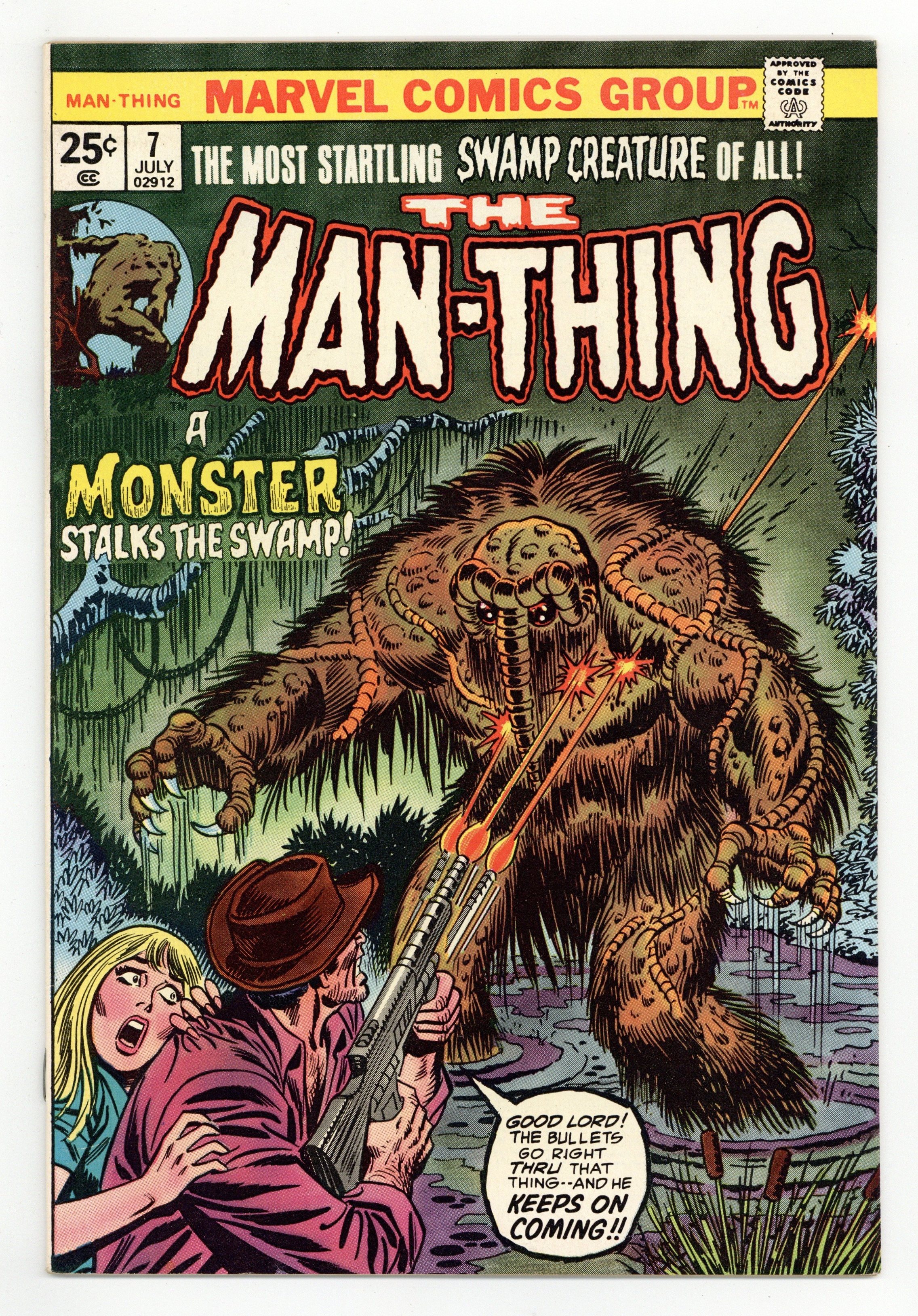 $16.00"The Old Die Young!" Written by Steve Gerber. Art by Mike Ploog. When the Man-Thing finds the legendary Fountain of Youth, only deaths awaits it. Includes Marvel Value Stamp. 32 pages, FC. Cover price $0.25.