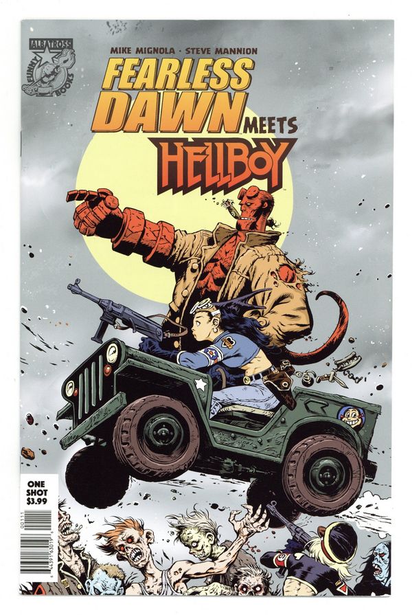 Story and Art by Mike Mignola and Steve Mannion. Cover by Steve Mannion. It's all out pulp adventure as Mike Mignola's Hellboy teams up with Steve Mannion's legendary underground comic hero, Fearless Dawn! A misadventure in Romania drops Hellboy into the middle of the paranormal mission of Fearless Dawn's crew. But this meeting of heroes ain't no picnic when the undead 666th Panzer Division shows up. Beautifully co-illustrated by Mike Mignola and Steve Mannion. For the hardcore collectors out there, Albatross offers a special limited-edition card stock cover of Fearless Dawn Meets Hellboy with art by Mike Mignola! 32 pages, full color. Cover price $3.99.