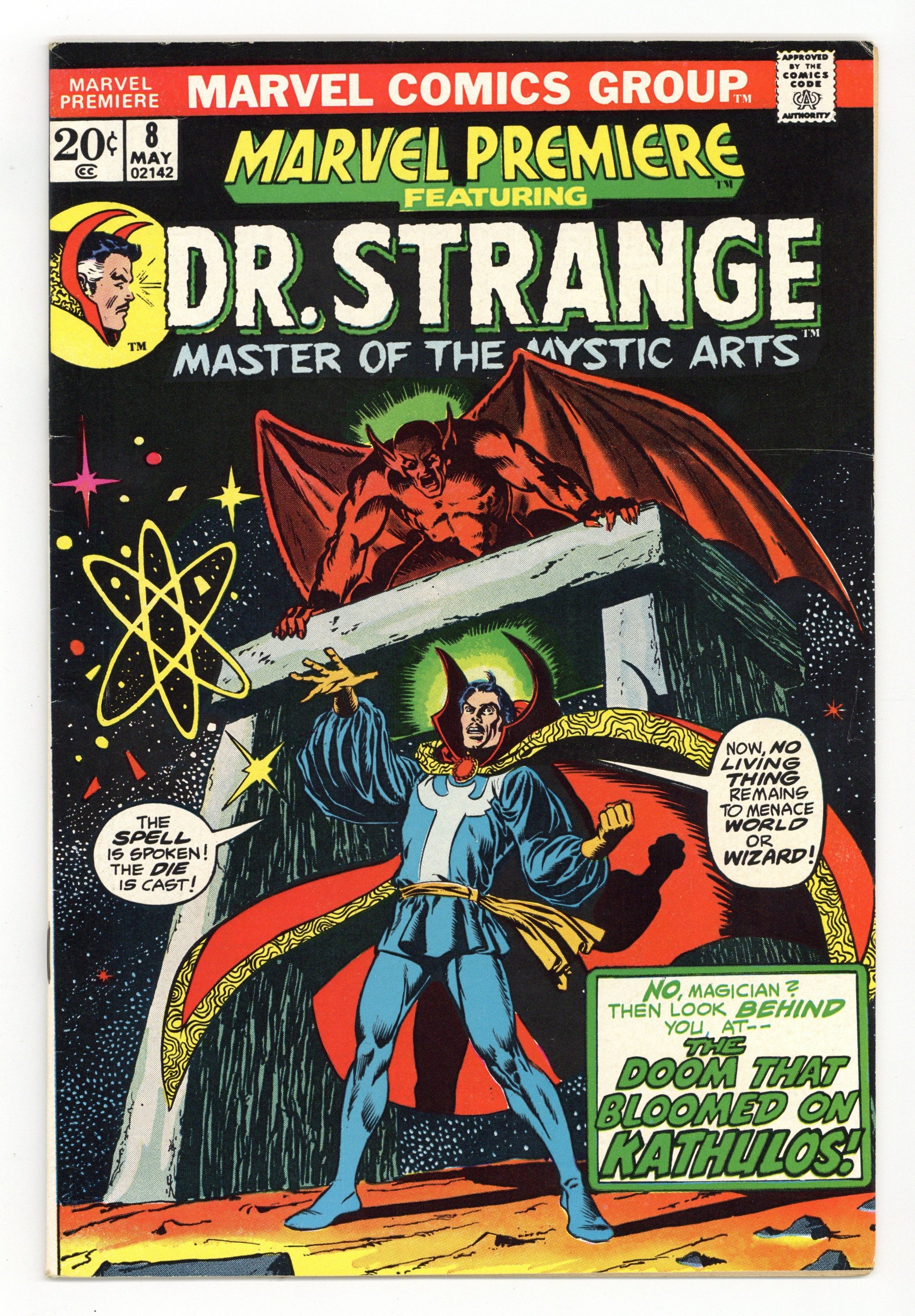 $15.75Cover pencils by Jim Starlin. The Doom That Bloomed on Kathulos, script by Gardner F. Fox, pencils by Jim Starlin, inks by Frank Giacoia and David Hunt; Strange battles demons at Stonehenge, and is transported to living planet Kathulos. Strange slays the plant/planet, and is marooned far from Earth. Featuring concepts created by Robert E. Howard. 36 pgs. $0.20. Cover price $0.20.