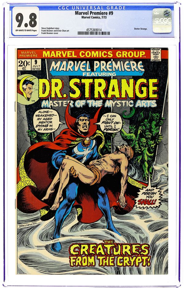 Cover art by Frank Brunner. The Crypts of Kaa-U!, script by Steve Englehart (co-plot, script) and Frank Brunner (co-plot), pencils by Frank Brunner, inks by Ernie Chan [as Ernie Chua]; Strange finds essence of Shuma-Gorath, whose trail leads to crypts of Kaa-U, where The Ancient One has gone to die; The Ancient One saves Strange from attack of Shadowmen, & Shuma-Gorath emerges from the Ancient One's mind. 36 pgs. $0.20. Cover price $0.20.