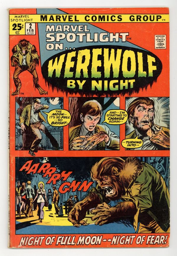 Ends Dec 15 8:56 PM CST Bid History 5 bids Current Bid $193 Your Secret Max Bid If you'd like to bid, please log in or register. 52-page giant. Origin and first appearance of Werewolf By Night. Cover pencils by Neal Adams, inks by Tom Palmer. First Night, script by Roy Thomas (plot); Jean Thomas (plot), and Gerry Conway (script), art by Mike Ploog; Jack learns of the family curse on his eighteenth birthday from his mother on her deathbead; Jack begins to believe that his step-father had his mother killed. House ad for Venus, art by Bill Everett. Where Gargoyles Dwell! starring Venus, script and art by Bill Everett. 52 pages, full color. Cover price $0.25.