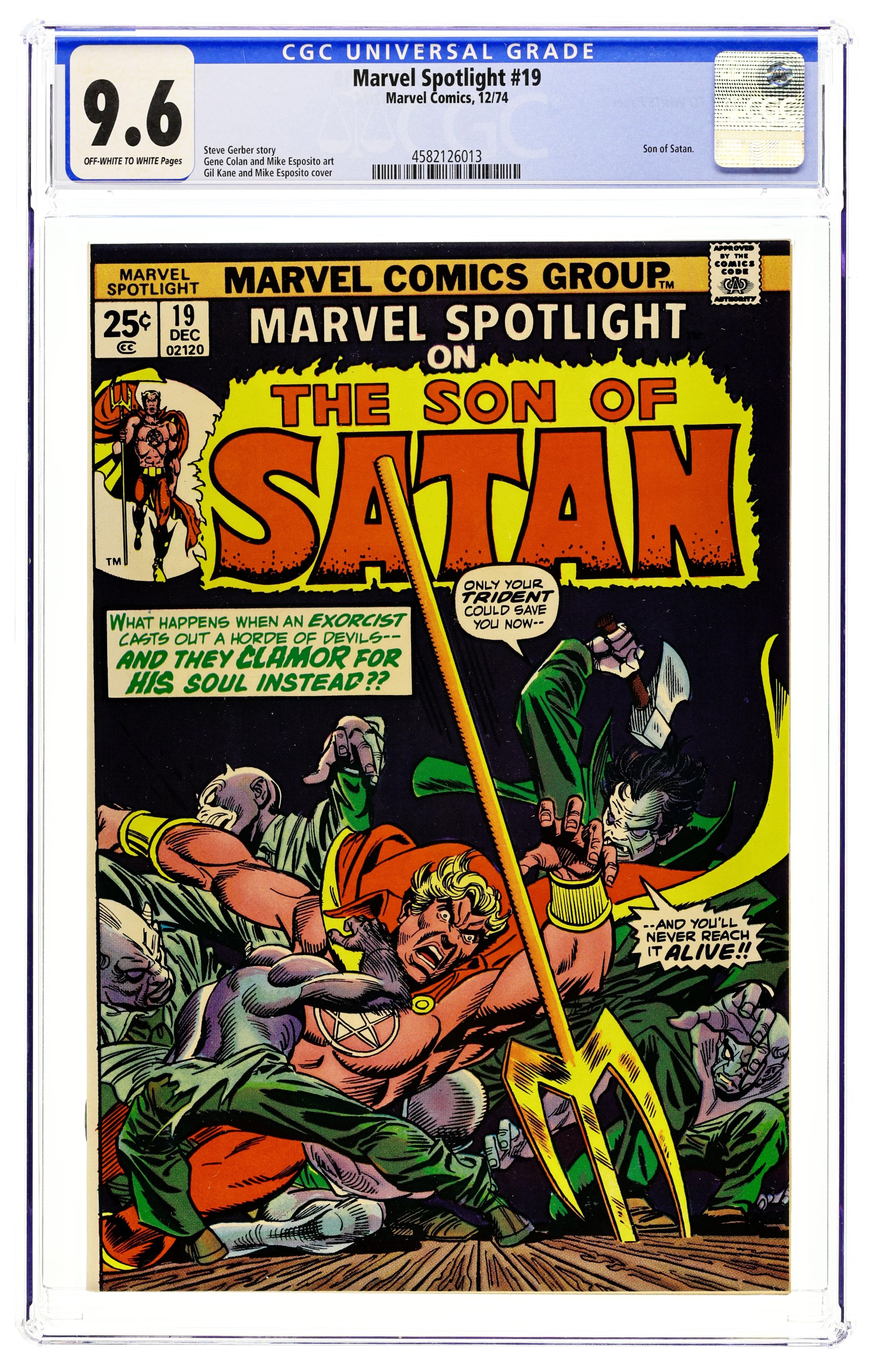 Cover pencils by Gil Kane. Demon, Demon--Who's Got the Demon?, script by Steve Gerber, pencils by Gene Colan, inks by Mike Esposito; Daimon battles the Allatou-possessed Alan Manners; the demon possesses Melissa and tortures her; the demon possesses Daniel. The letters page contains Marvel Value Stamp series A # 14 (The Living Mummy). 36 pages, full color. Cover price $0.25.