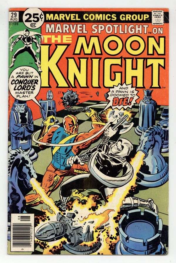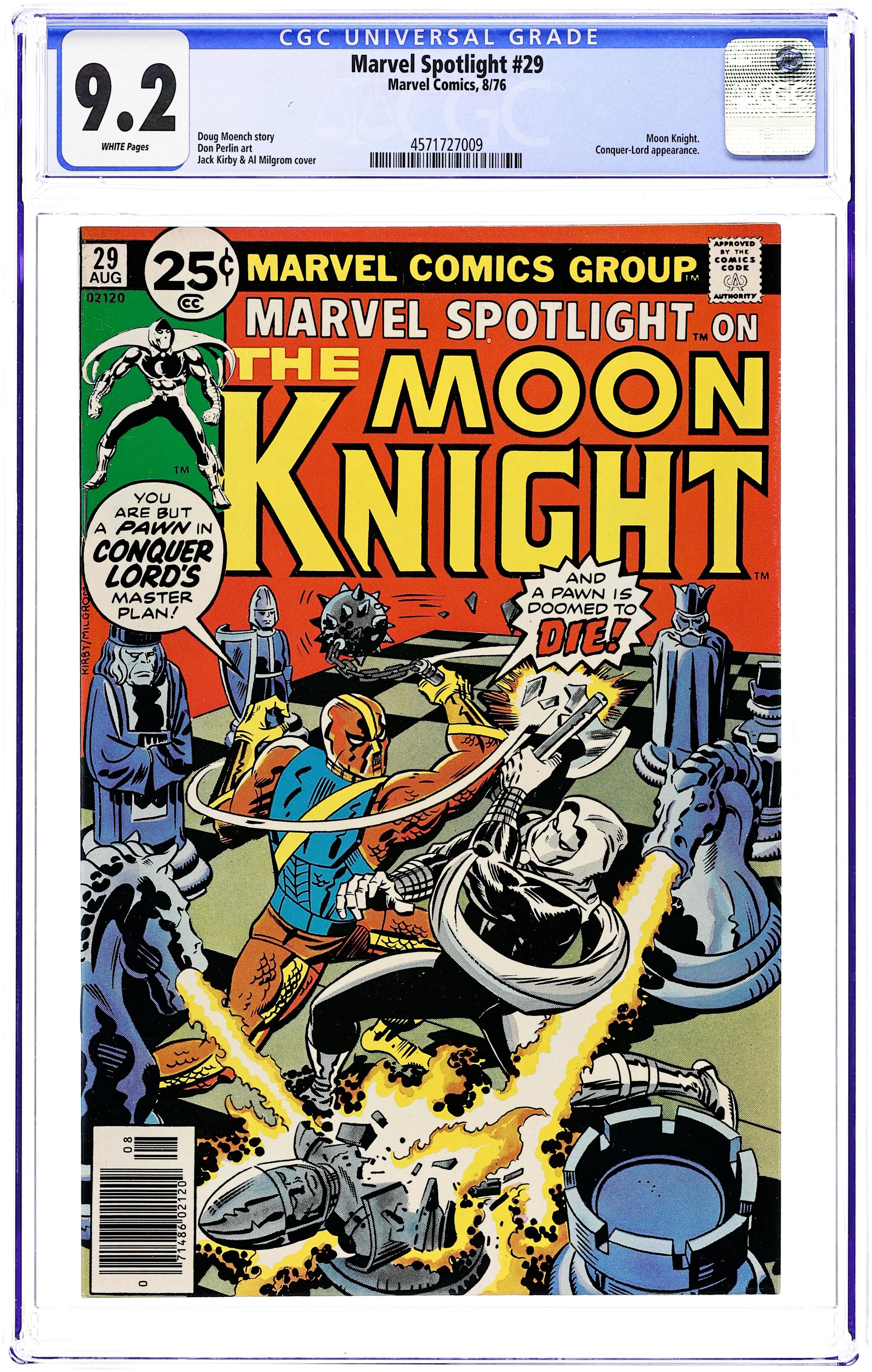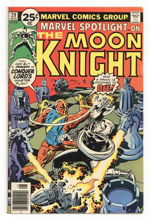 Cover pencils by Jack Kirby, inks by Al Milgrom. The Deadly Gambit of Conquer-Lord!, script by Doug Moench, art by Don Perlin; Moon Knight stops Conquer-Lord from assassinating the mayor; Conquer-Lord escapes with Marlene as his hostage; Moon Knight goes after him 36 pages, full color. Cover price $0.25.