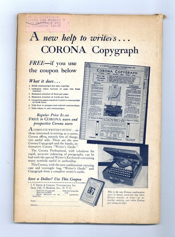 Published Sep 1931 by F+W Publications.$4.00Vol. 11, No. 10 - September, 1931. 6.5" x 9.5", 64 pages, B&W. Cover price $0.20.