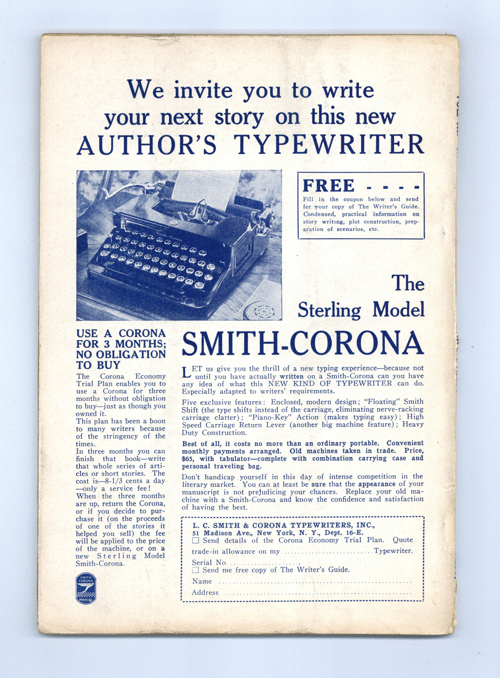 Published May 1932 by F+W Publications.$8.00- Front cover detached 5%. Staple rust: Slight.