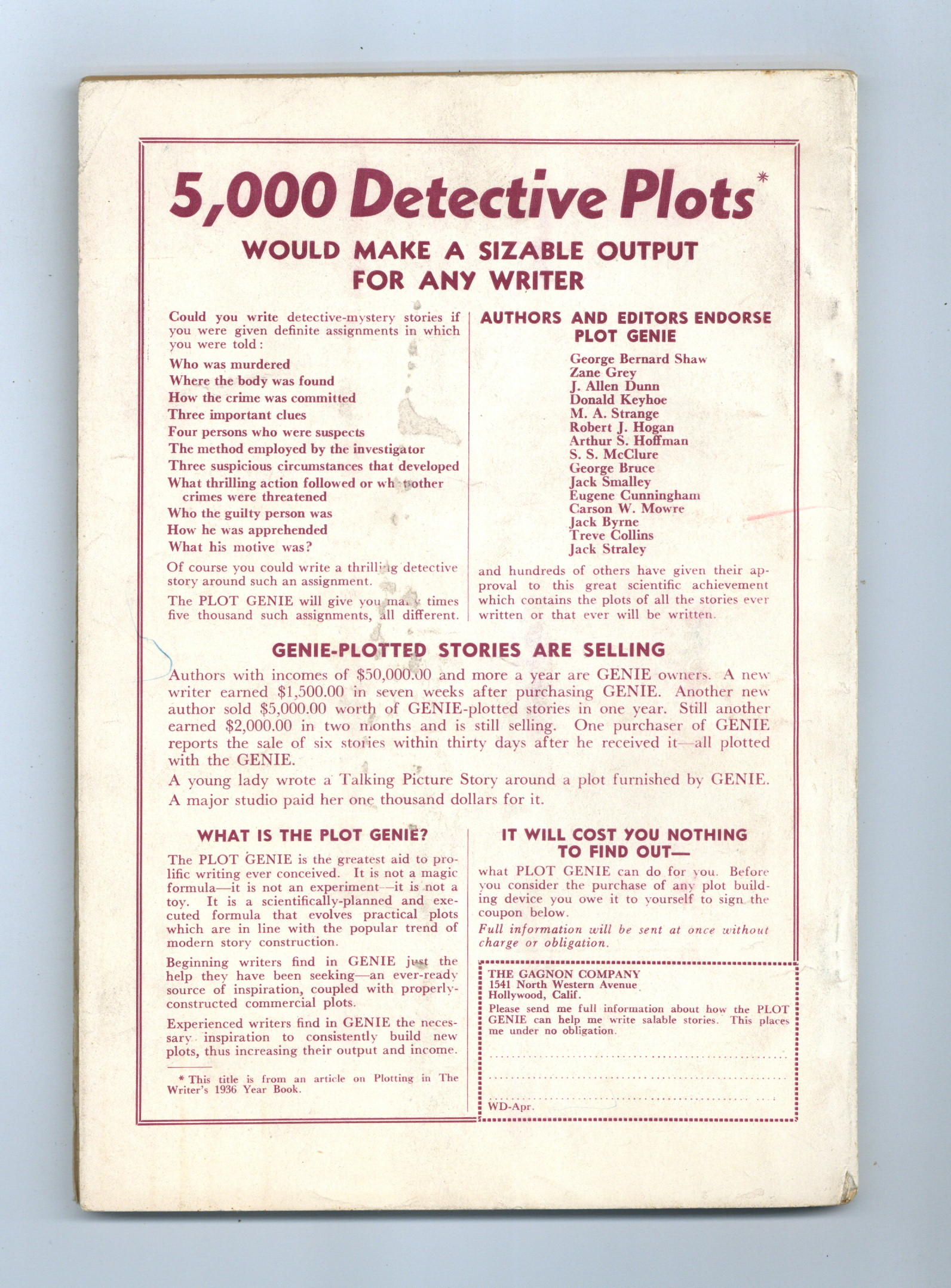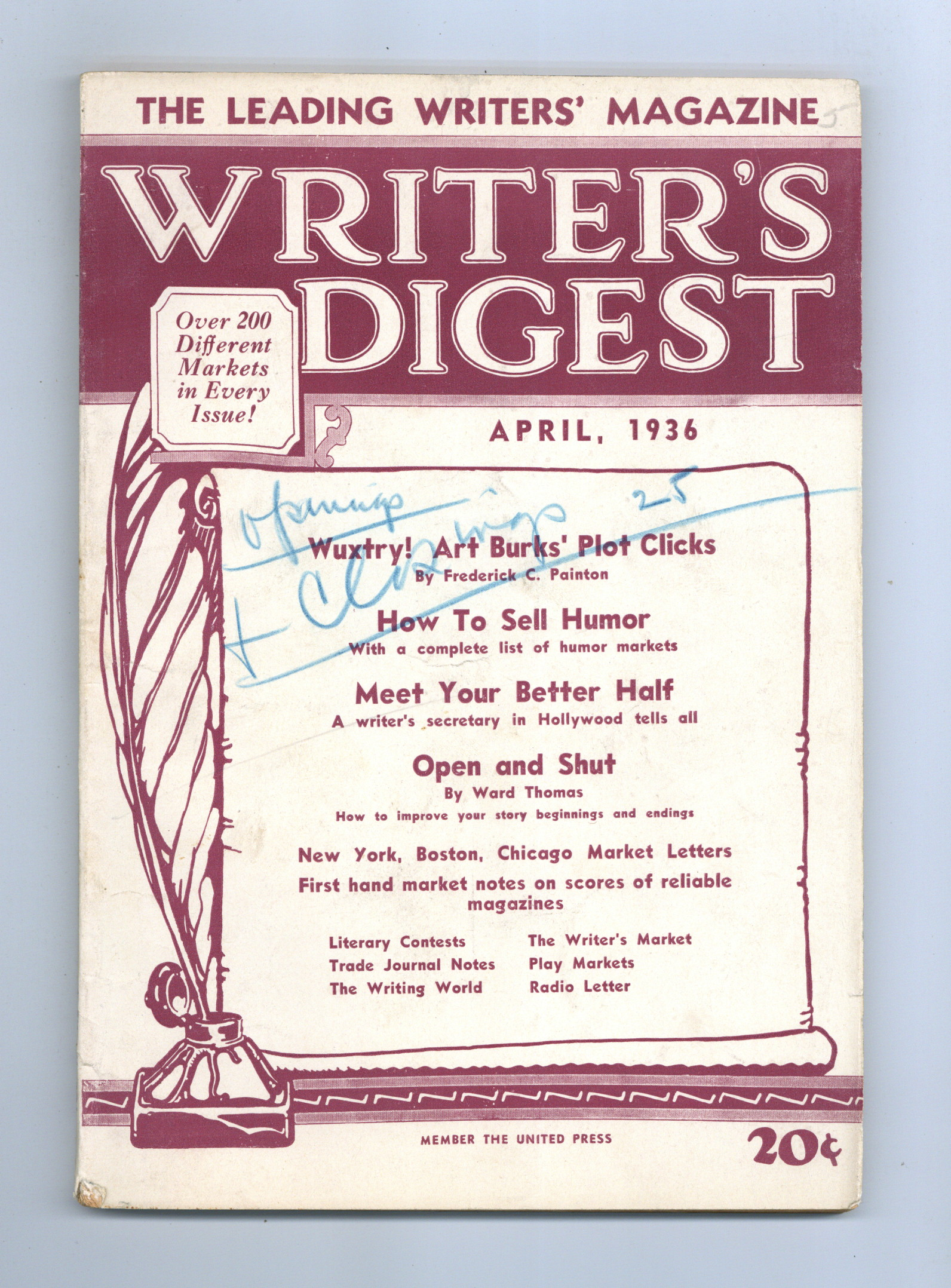 Published Apr 1936 by F+W Publications.$12.00- Water damage: Slight.