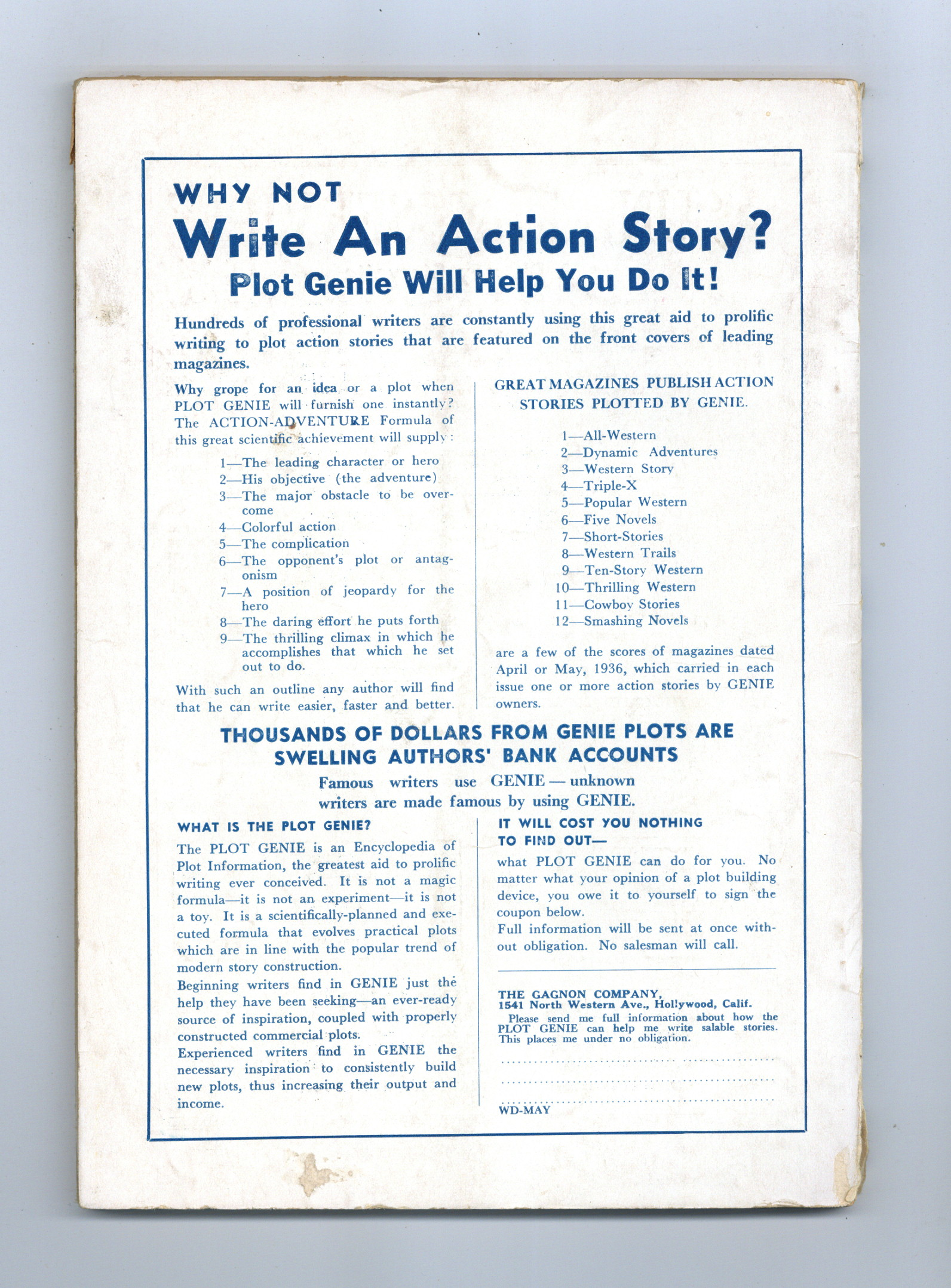 Published May 1936 by F+W Publications.$8.00- Front cover detached 30%. Back cover detached 10%.