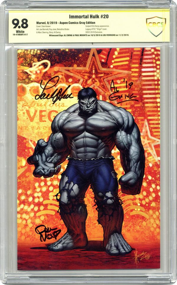 - Witnessed Sigs: Al Ewing & Paul Mounts on 10/5/2019 & Lou Ferrigno on 11/2/2019. Aspen Comics Gray Edition.