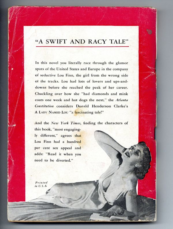 A Lady Named Lou by Donald Henderson Clarke. An Avon Special, 1951. "A swift and racy tale." 5 1/4-in. x 7 1/2-in., 126 pages, black and white. Text only. Cover price $0.35.