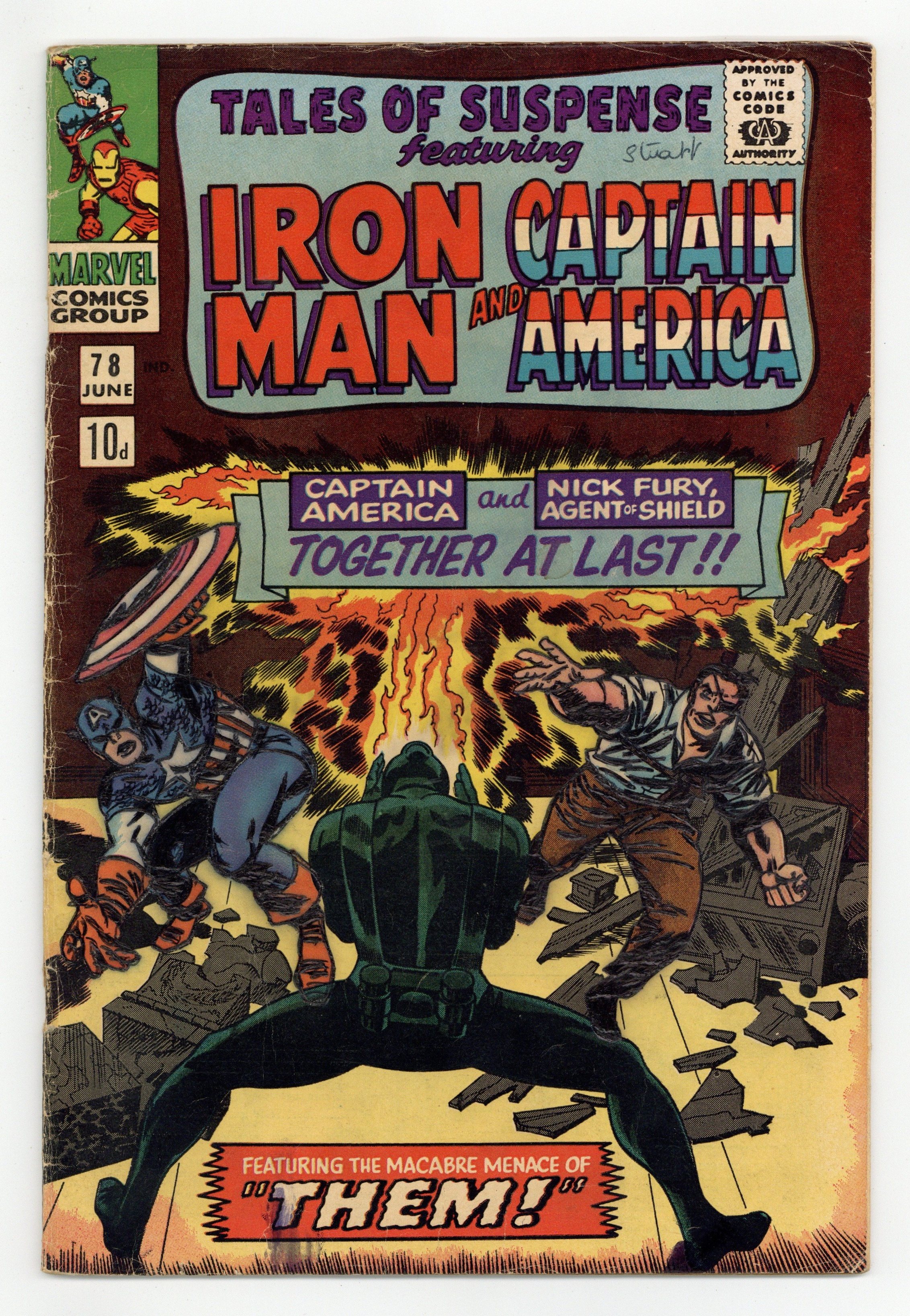 UK edition. Identical to US edition, but has 10d cover price. Cover pencils by Jack Kirby, inks by Frank Giacoia. "Crescendo!", script by Gene Colan (co-plot) and Stan Lee (co-plot, dialogue), pencils by Gene Colan, inks by Jack Abel (as Gary Michaels); Iron Man defeats Ultimo by tricking the monstrous android into setting off a long-dormant volcano; The Mandarin believes Tony Stark is dead, and vows Ultimo will live again; Shellhead steals a Commie jet and narrowly avoids getting shot down by US fighters. "Them!", script by Jack Kirby (plot) and Stan Lee (co-plot, dialogue), pencils by Jack Kirby, inks by Frank Giacoia; While Cap is in the middle of a training exercise involving flying "shock rollers," he's surprised to see Nick Fury turn up looking for info on a secret organization known only as "THEM"; As they talk, a strange flying craft lands outside Avengers Mansion, and a large, deadly "chemical android" attacks. 36 pgs., full color.