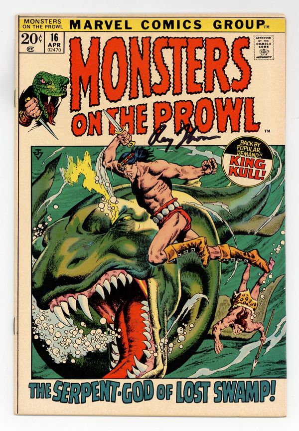 Starts Jan 3 Cover art by John Severin. The Forbidden Swamp, script by Roy Thomas, art by John Severin; Kull and Brule enter a temple to the Valusian snake-god which is guarded by a giant undersea beast. There he meets Thulsa Doom for the first time; she pretends to be an ally and asks to return with them to the City of Wonders; continued from Kull the Conqueror #2. Where Walks the Ghost, art by Steve Ditko; An escaped convict looks to buy a house that has the reputation of being haunted so people will steer clear of him. Mister Morgan's Monster, art by Jack Kirby; Humanoid robots are banned, but their inventor keeps one in secret, and aliens try to turn it against humanity. 36 pgs. $0.20. Cover price $0.20.