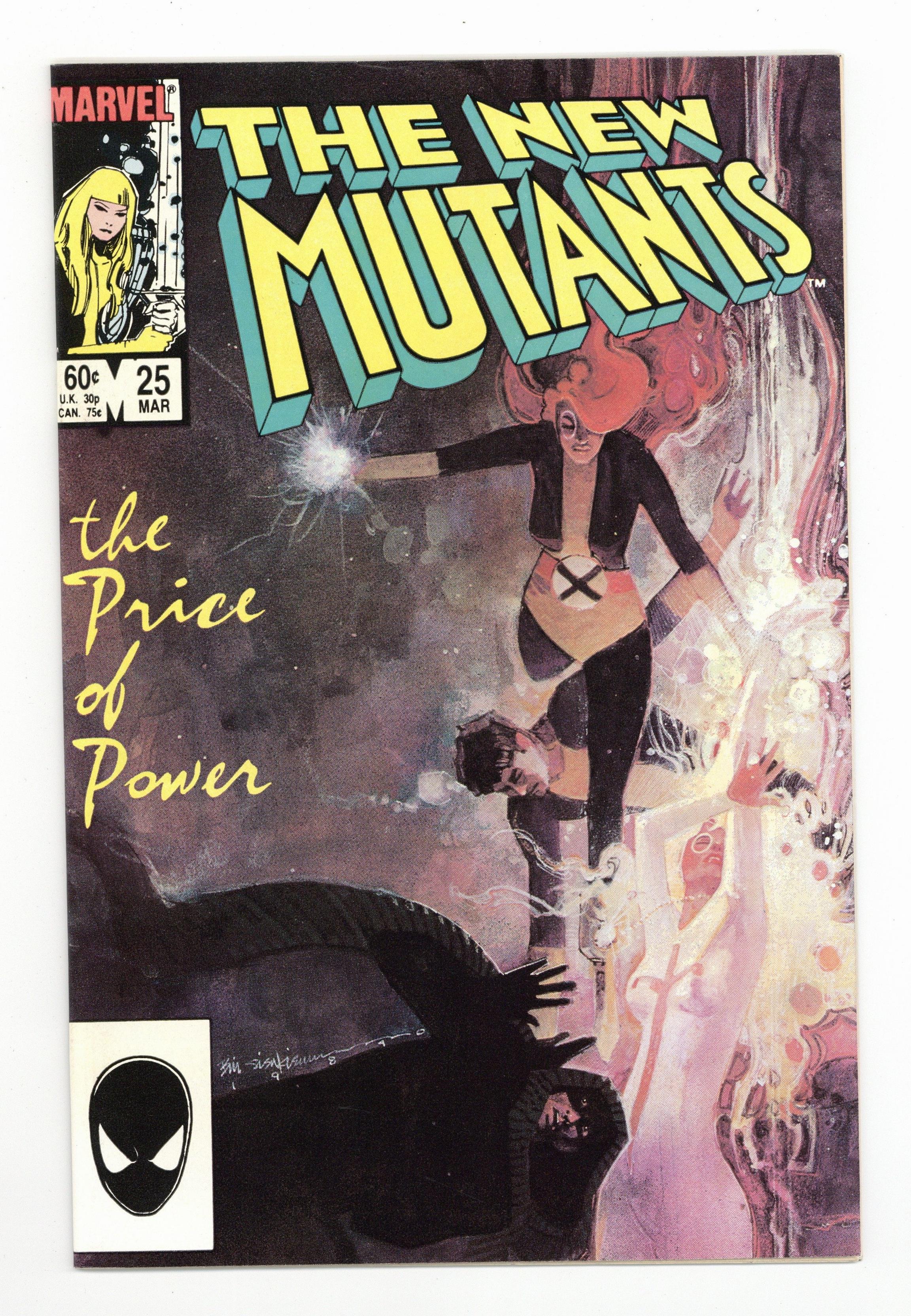 Direct Edition. Last 60-cent cover price issue. 1st appearance of Legion (cameo). Cover art by Bill Sienkiewicz. The Only Thing to Fear . . ., script by Chris Claremont, art by Bill Sienkiewicz; Professor X talk with Cloak and Dagger, then asks Magik to transport them all to Limbo; Magik and Rogue succeed in Cloak and Dagger's powers from Sunspot and Wolfsbane back to Cloak and Dagger; Cloak and Dagger renew their fight against injustice. David Charles Haller and Lila Cheney illustrations by Bill Sienkiewicz. 36 pgs. $0.60. Cover price $0.60.
