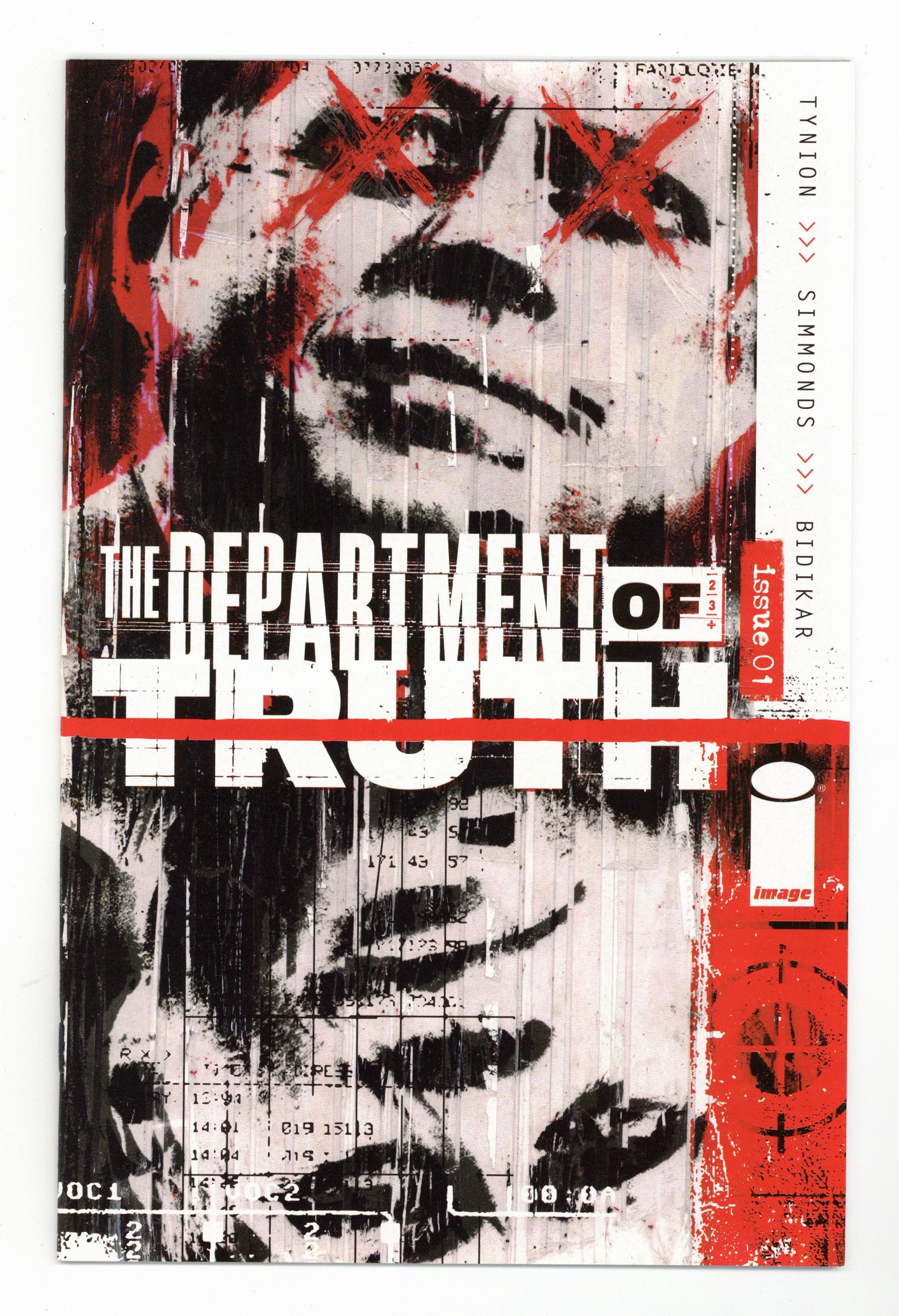 Written by James Tynion IV. Art and Cover by Martin Simmonds. SERIES PREMIERE! Cole Turner has studied conspiracy theories all his life, but he isn't prepared for what happens when he discovers that all of them are true, from the JFK assassination to flat Earth theory and reptilian shapeshifters. One organization has been covering them up for generations. What is the deep, dark secret behind the Department of Truth? 32 pages, full color. Rated M Cover price $3.99.