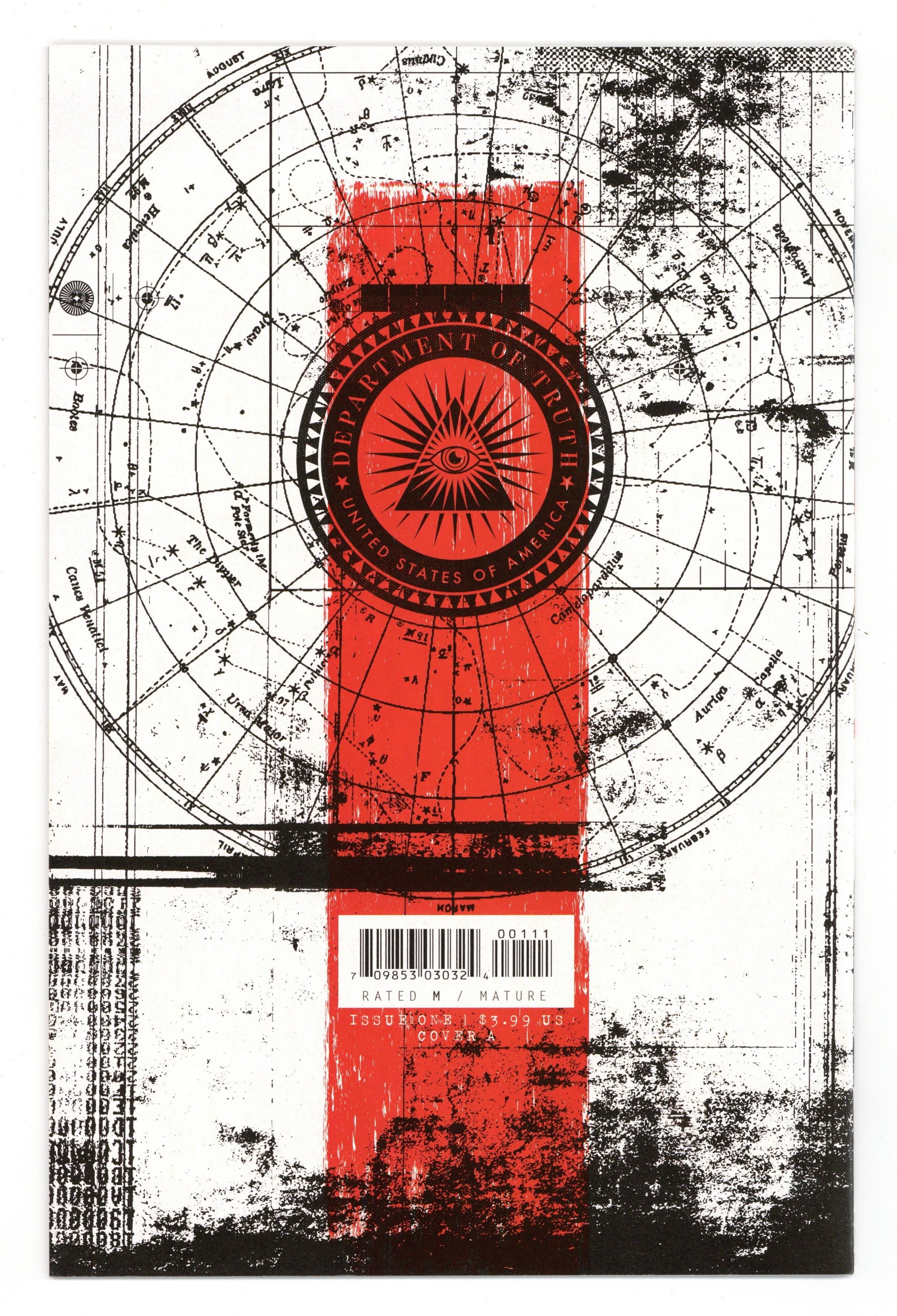 $28.00Written by James Tynion IV. Art and Cover by Martin Simmonds. SERIES PREMIERE! Cole Turner has studied conspiracy theories all his life, but he isn't prepared for what happens when he discovers that all of them are true, from the JFK assassination to flat Earth theory and reptilian shapeshifters. One organization has been covering them up for generations. What is the deep, dark secret behind the Department of Truth? 32 pages, full color. Rated M Cover price $3.99.