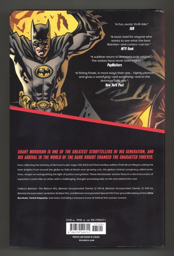 Volume 3 - 1st printing. Collects Batman: The Return (2010 DC), Batman Incorporated (2010 1st Series) #1-8, Batman Incorporated: Leviathan Strikes (2011), Batman Incorporated (2012 2nd Series) #0-13, and Batman Incorporated Special (2013 DC).
