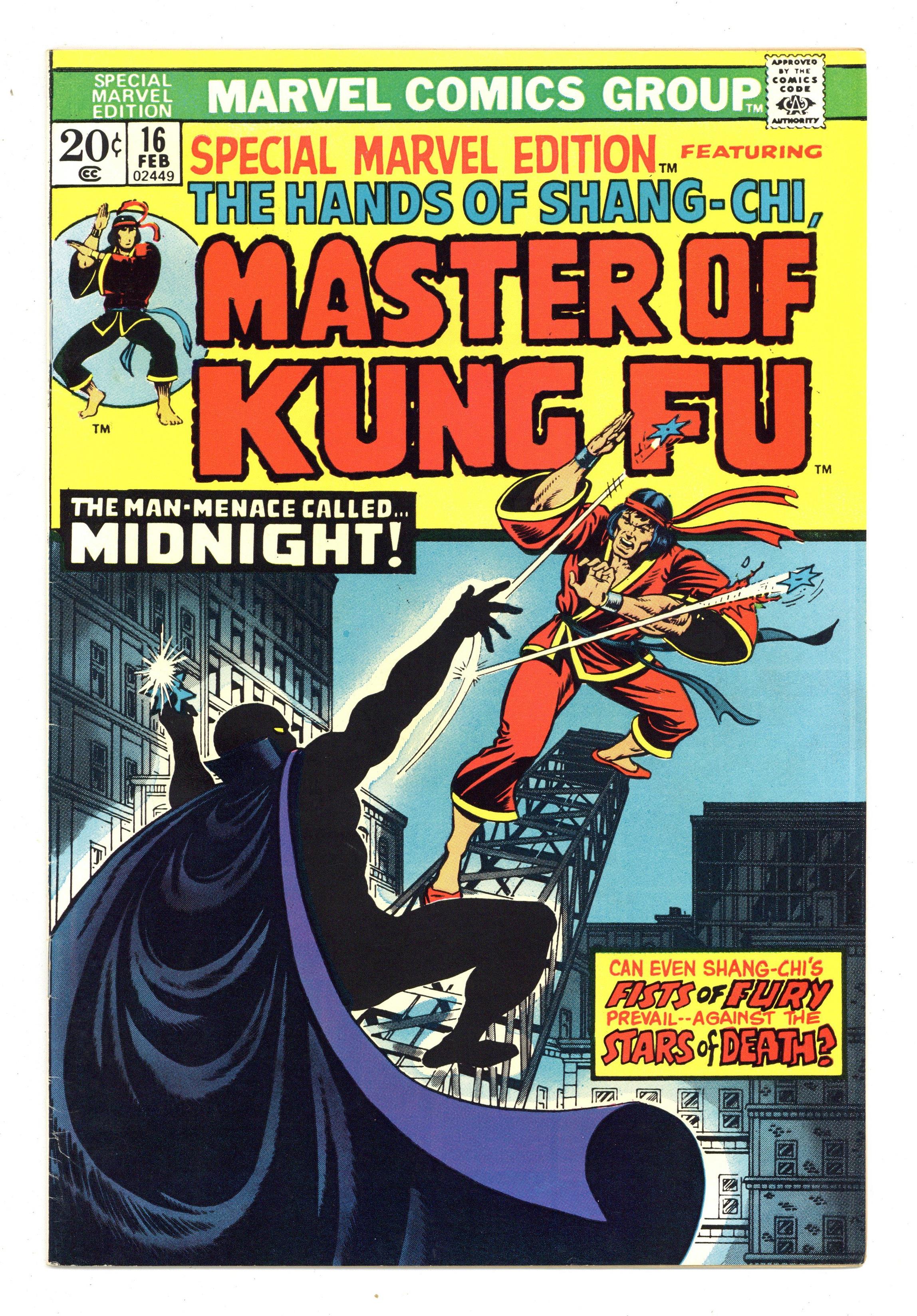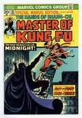 $15.00Final issue of the series. Story continues in Master of Kung Fu. Cover art by Jim Starlin. Midnight Brings Dark Death! starring Master of Kung Fu, script by Steve Englehart and Jim Starlin (co-plot), pencils by Jim Starlin (layouts, credited as "artist"), Al Milgrom (finished art, credited as "co-artist"), inks by Al Milgrom; Chi finds himself fighting against his father, and his father's thugs and dacoits. 36 pgs. $0.20. Cover price $0.20.