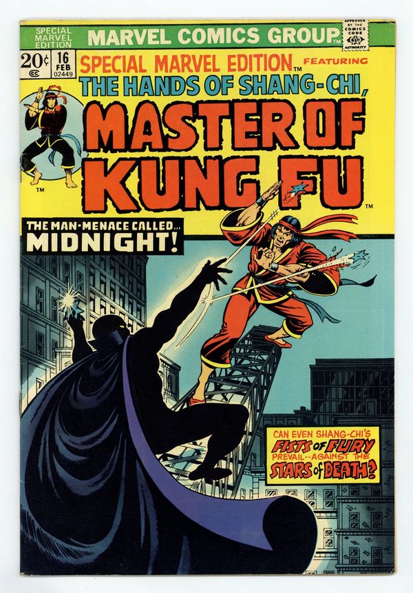 Final issue of the series. Story continues in Master of Kung Fu. Cover art by Jim Starlin. Midnight Brings Dark Death! starring Master of Kung Fu, script by Steve Englehart and Jim Starlin (co-plot), pencils by Jim Starlin (layouts, credited as "artist"), Al Milgrom (finished art, credited as "co-artist"), inks by Al Milgrom; Chi finds himself fighting against his father, and his father's thugs and dacoits. 36 pgs. $0.20. Cover price $0.20.