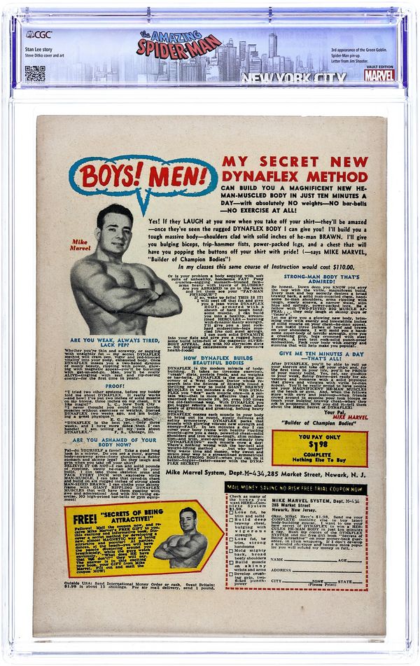 Cover art by Steve Ditko. The Goblin and the Gangsters, script by Stan Lee, art by Steve Ditko; the Green Goblin returns and wants to take over Lucky Lobos mob; Spidey battles Lucky Lobo and his gang; Spidey fights the Green Goblin in a factory. Reprinted in Marvel Tales # 18 and 161. Letter from Jim Shooter, former editor-in-chief at Marvel, critiquing Marvel's handling of Spider-Man. 36 pgs. $0.12. Cover price $0.12.