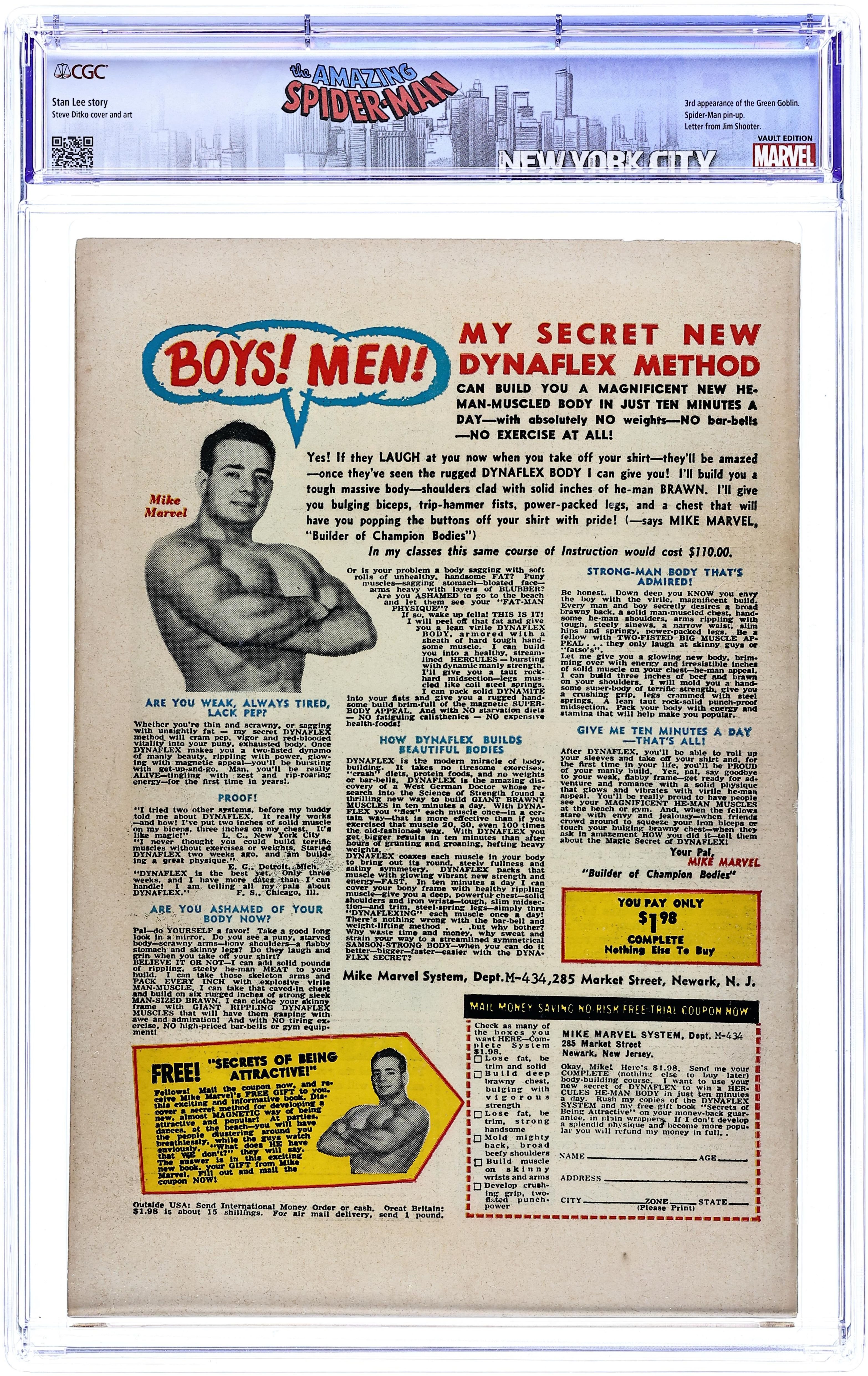 Starts Jan 3 Cover art by Steve Ditko. The Goblin and the Gangsters, script by Stan Lee, art by Steve Ditko; the Green Goblin returns and wants to take over Lucky Lobos mob; Spidey battles Lucky Lobo and his gang; Spidey fights the Green Goblin in a factory. Reprinted in Marvel Tales # 18 and 161. Letter from Jim Shooter, former editor-in-chief at Marvel, critiquing Marvel's handling of Spider-Man. 36 pgs. $0.12. Cover price $0.12.