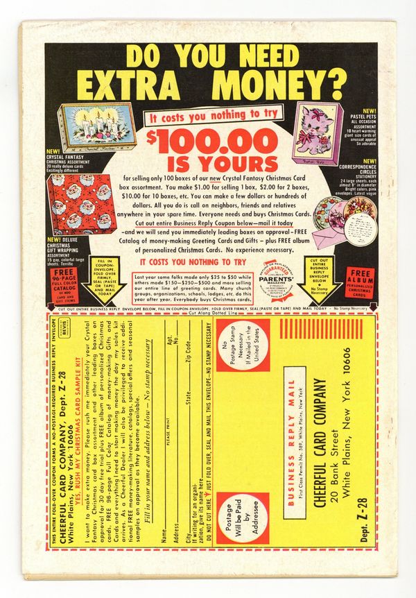 Starts Jan 3 "The Spider of the Man?" Script by Stan Lee. Pencils by Gil Kane. Inks by Frank Giacoia and Tony Mortellaro (backgrounds). Cover by John Romita and Frank Giacoia. It's the 100th anniversary issue of the Amazing Spider-Man title -- with an all-time cover! Peter Parker wants to live a normal life with Gwen Stacy. But he doesn't think he can as long as he has his spider-powers. So, with that thought in mind, the young scientist creates a special potion -- which he believes will eliminate his remarkable abilities. After Peter drinks the potion, he lies down to sleep. And when he wakes up...he gets the biggest shock of his amazing life! Flashback cameos by Aunt May, J. Jonah Jameson, Betty Brant, Gwen Stacy, and Captain Stacy. (Notes: There have been many homages to John Romita's classic cover including the covers to Marvel Tales 100, Ultimate Spider-Man (2000) 100B, and Peter Parker (2017) #1EBAY. This story was reprinted in Marvel Treasury Edition #14 and Marvel Tales 253.) 36 pages. Cover price $0.15.