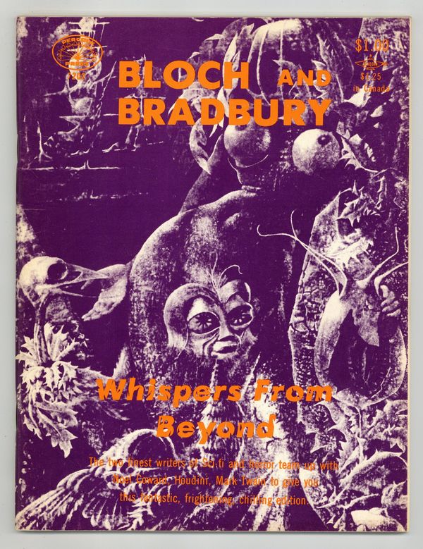 Published 1972 by Peacock Press.$18.00First printing, 1972. Expanded edition of 1969 edition. Bradbury and Bloch short stories interspersed with stories by Houdini, Shakespeare, Noel Coward and Mark Twain. Text header illustrations. 8 1/4-in. x 10 3/4-in., 80 pages, B&W. Cover price $1.00.