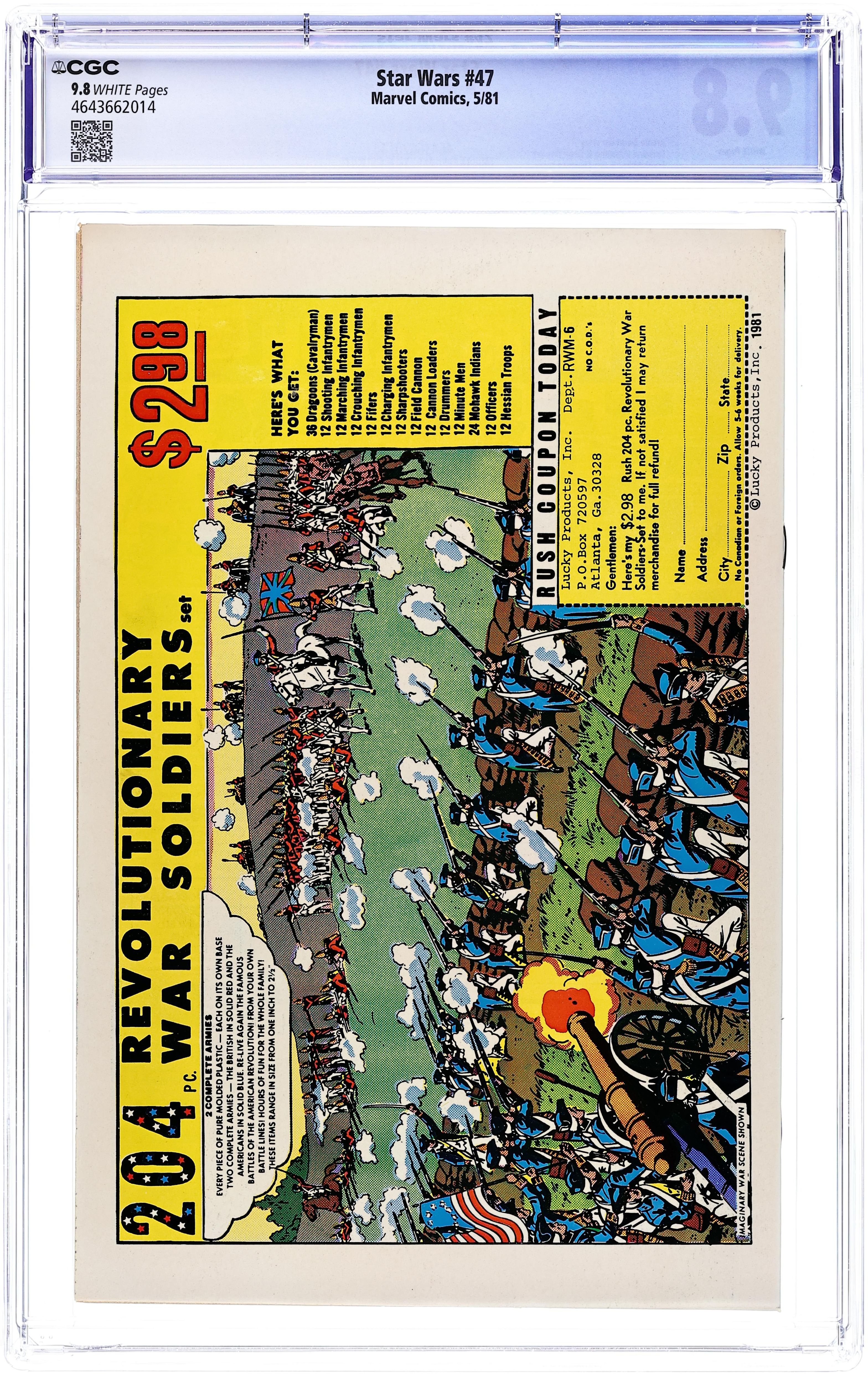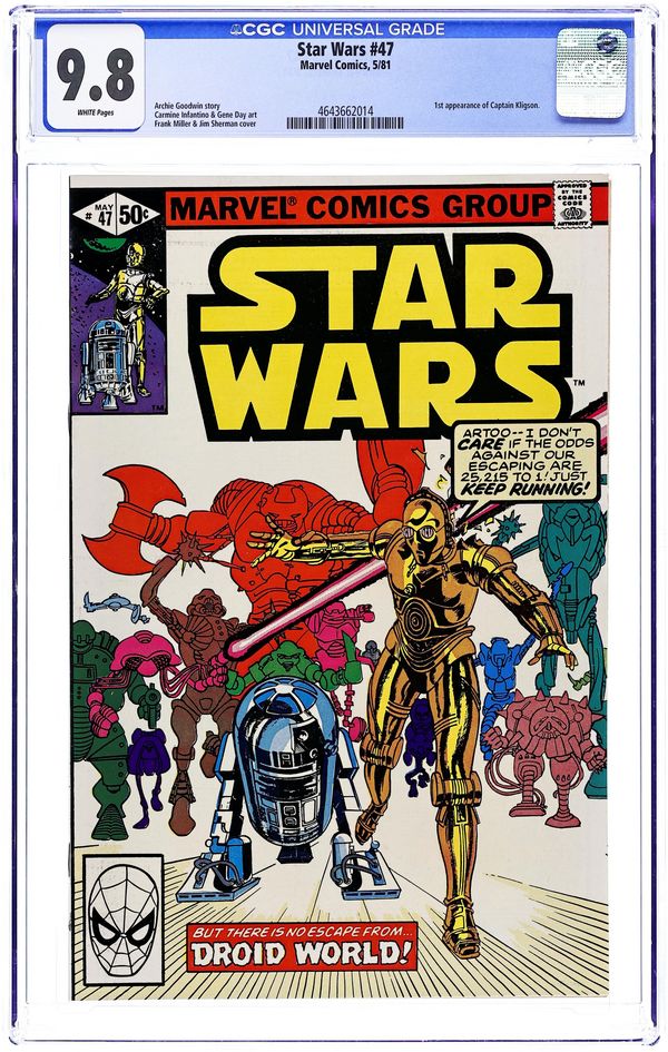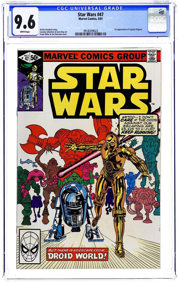Direct Edition. Cover pencils by Frank Miller, inks by James Sherman. "Droid World!", script by Archie Goodwin, pencils by Carmine Infantino (breakdowns) and Gene Day (finished art), inks by Gene Day; A droid populated space station turns to anarchy as Rebel droids and Imperial droids fight for important schematics! 36 pgs., full color. Cover price $0.50.