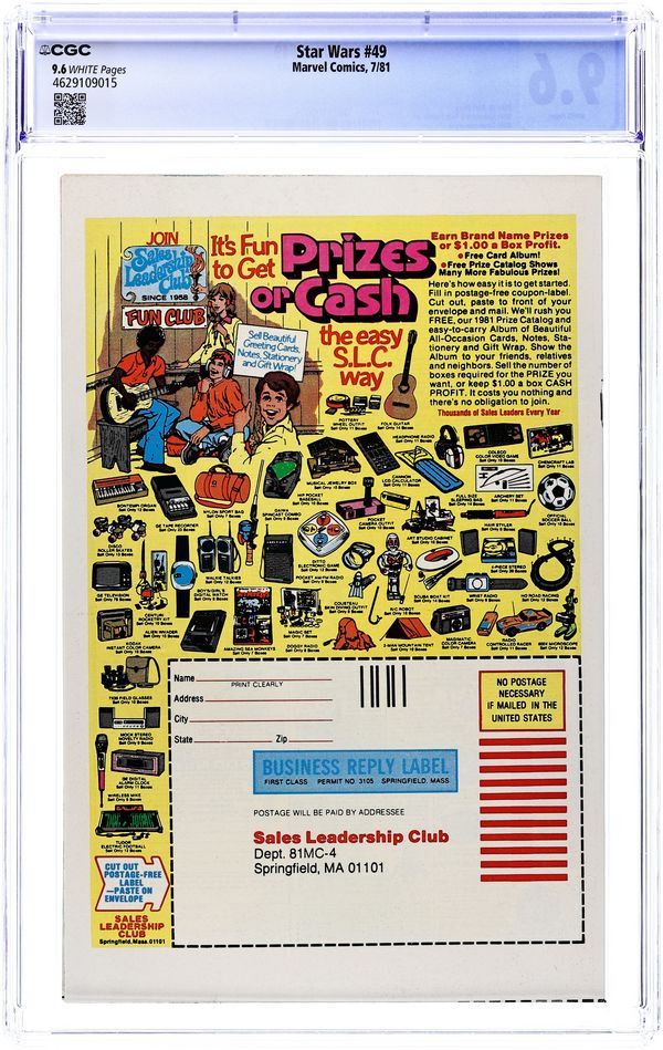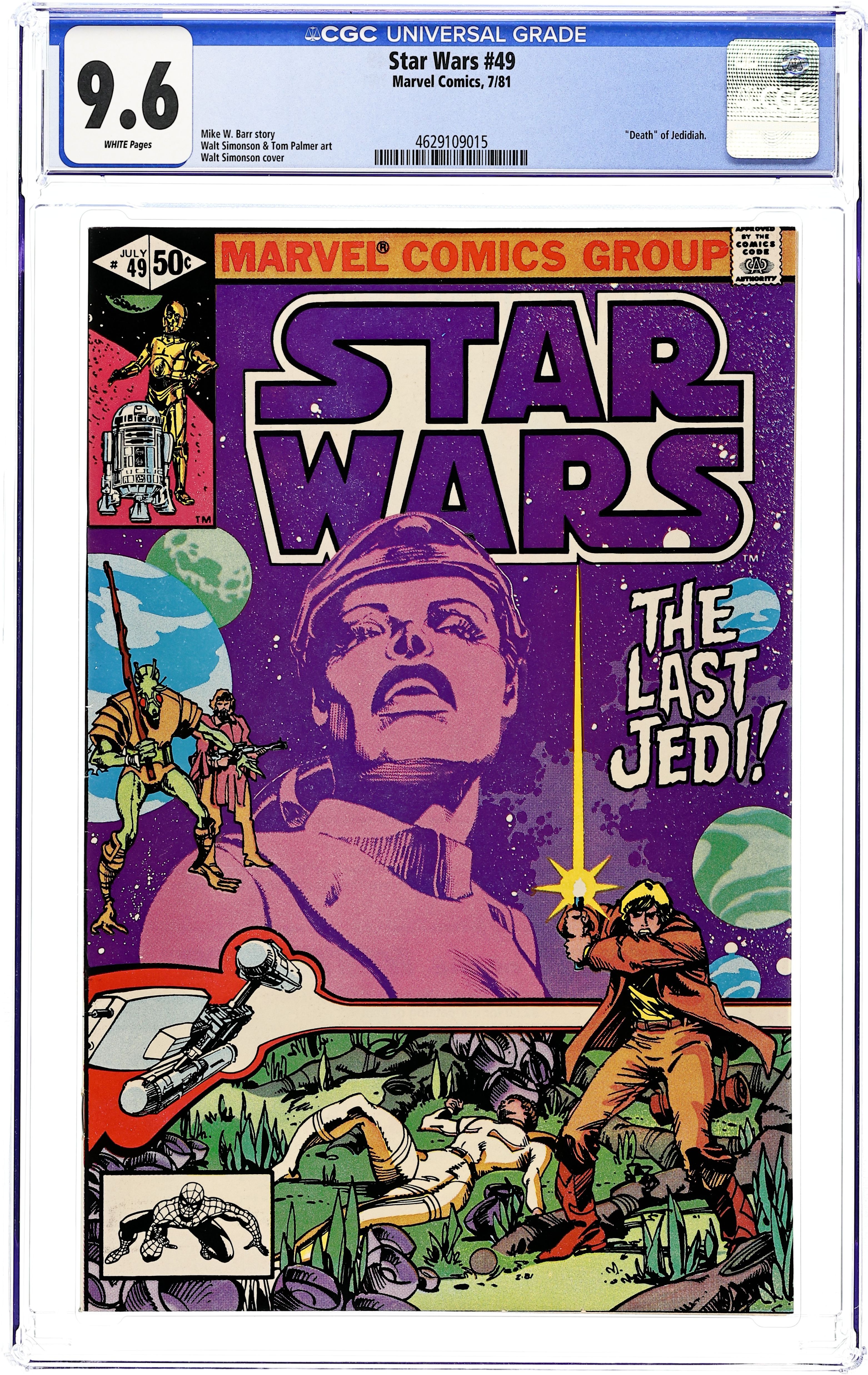 Tags: Star Wars$15.00Direct Edition. Cover art by Walt Simonson. "The Last Jedi!", script by Mike W. Barr, pencils by Walt Simonson (breakdowns) and Tom Palmer (finished art), inks by Tom Palmer; Can Luke and Leia return a prince back to his planet before his younger brother, an Imperial sympathizer, will gain control of the planet? Hostess Cup Cakes ad, Spider-Man VS. The Human Computer! 36 pgs., full color. Cover price $0.50.