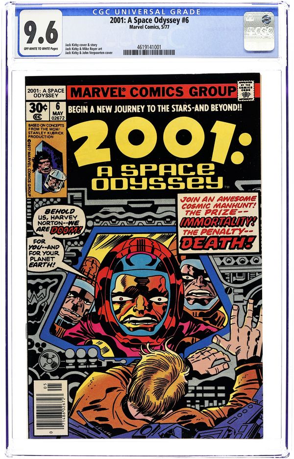 Written by Jack Kirby. Art by Jack Kirby and Mike Royer. Cover by Jack Kirby. Harvey Norton joins up with the space exploration after encountering the monolith in 2040. While in Neptunes orbit, Harvey and his teammates find a capsule containing an alien female. Based on concepts from the film by Stanley Kubrick & Arthur C. Clarke. Cover price $0.30.