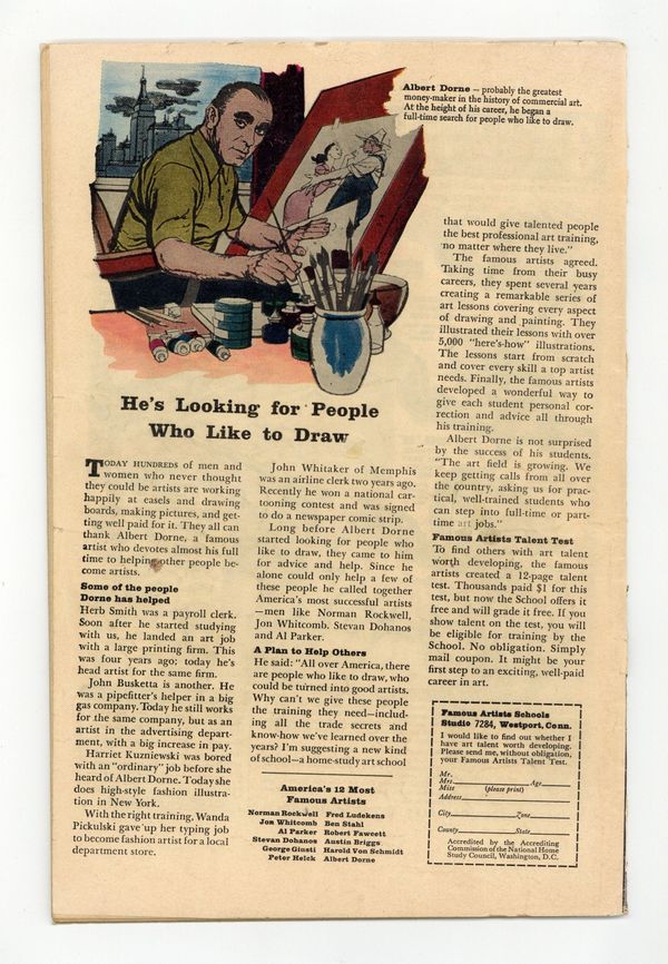Cover pencils by Jack Kirby, inks by Sol Brodsky. First appearance of the Beetle in the Human Torch story, "The Birth of the Beetle!", script by Stan Lee, pencils by Carl Burgos, inks by Dick Ayers; Mechanic-inventor Abner Jenkins creates the identity of The Beetle; While taking the Fantasti-Car for a double-date, Johnny & Ben wind up being humiliated by The Beetle; Guest starring the Thing. "The Challenge of Loki!", script by Stan Lee and Steve Ditko (co-plot), pencils by Steve Ditko, inks by George Roussos (as George Bell); Dr. Strange practices the art of levitation; Meanwhile, in faraway Asgard, home of the Norse Gods, Loki, God of Mischief, plots as always; He contacts Doctor Strange and tries to convince him that he is a prisoner of Thor, who is evil and deceiving his father; Strange uses a spell to take Thor's hammer (first cross-over with Thor). (Reprinted in Giant-Size Marvel Triple Action # 2.) "Strange Mission" text story, art by Joe Maneely. 36 pgs., full color. Cover price $0.12.