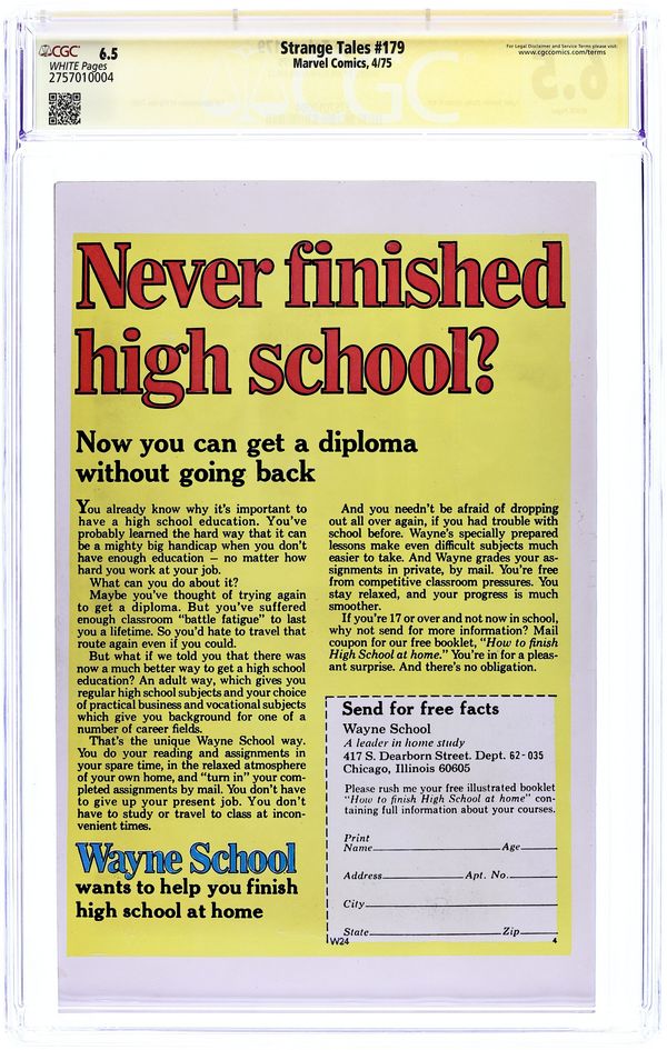 $40.00Cover art by Jim Starlin. "Death Ship!", script and art by Jim Starlin; Warlock is captured by Autolycus of the Black Knights an brought aboard Magus' Flagship; His fellow prisoners tell Warlock, that survivors of the Wars of the Church are taken as slave laborers, those who refuse will be terminated and their remains will be chemically broken down and valuable elements that can be retrieved will be used to further the cause of the Church; They also tell him, that Non-Humanoids are not considered fashioned in the Magus' image and thus must be disposed of, this also holds true for some Humanoid types—such as Trolls; First appearance of Pip the Troll. 36 pgs., full color. Cover price $0.25.