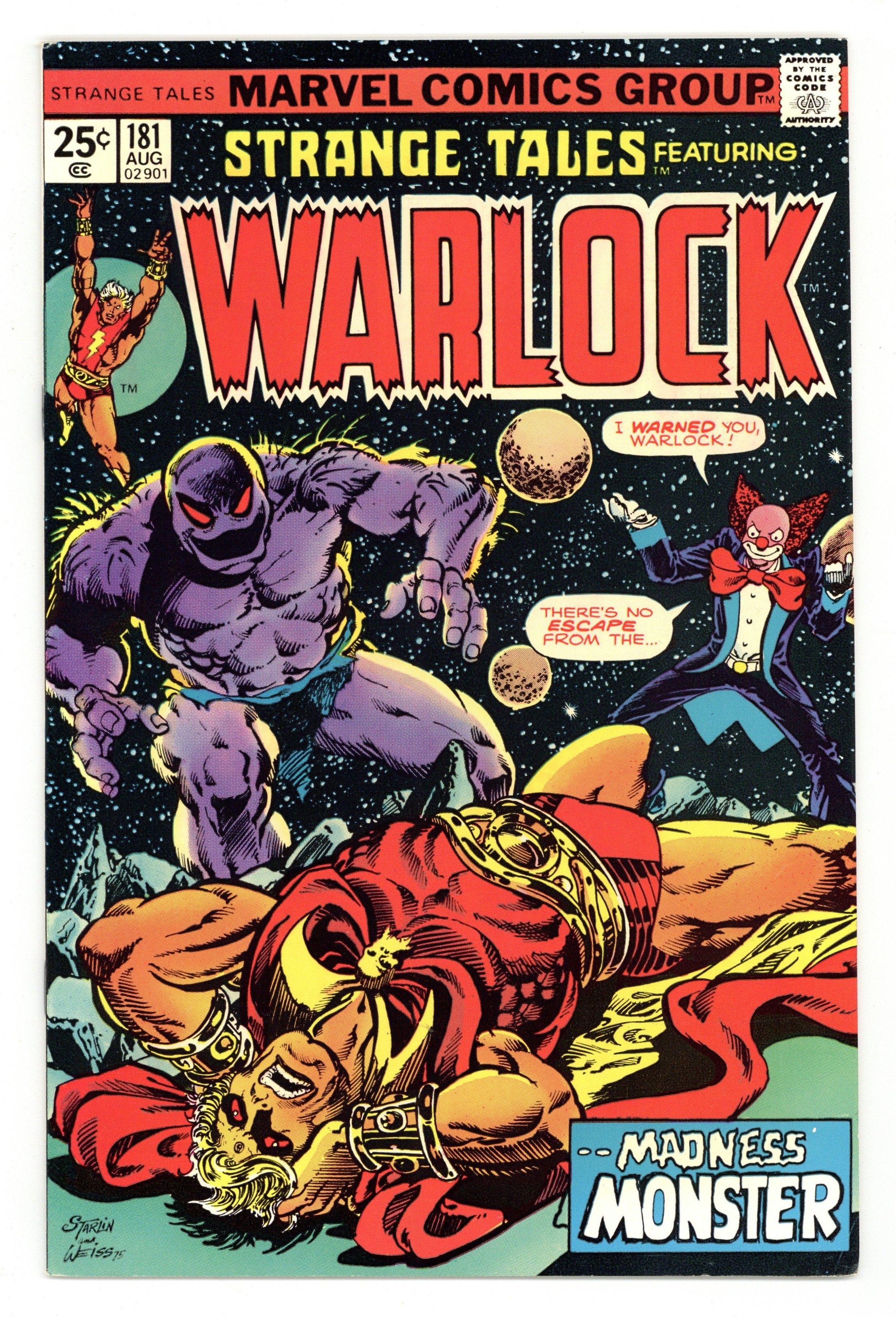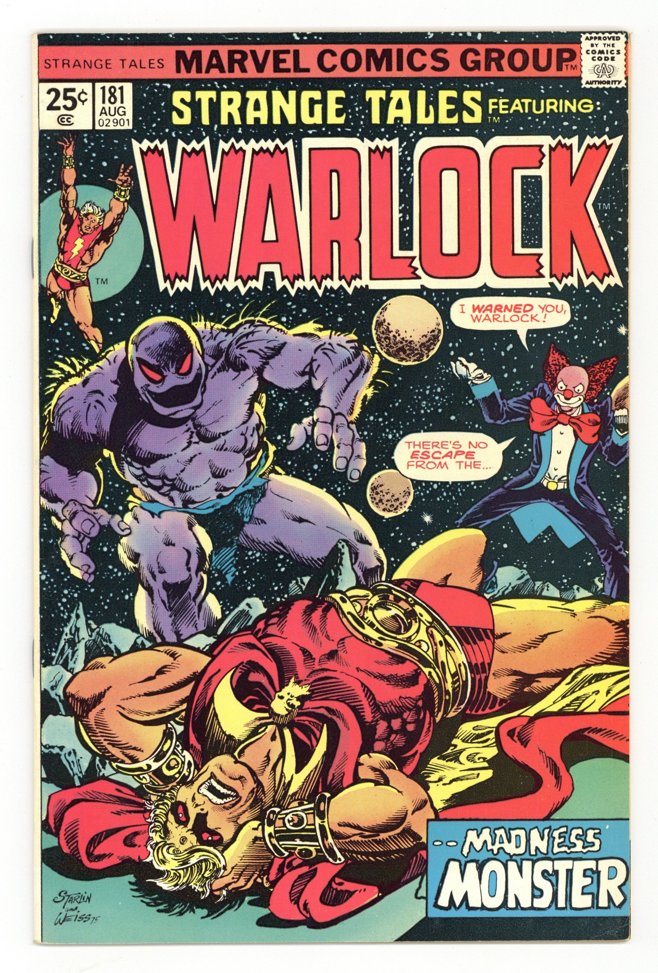 $15.00Cover pencils by Jim Starlin, inks by Alan Weiss. "1000 Clowns!", script and pencils by Jim Starlin, inks by Al Milgrom; Warlock finds himself in a strange place and considers, that this is just an illusion but decides, that he is in a Reality unlike any he has ever seen before, the Head Clown states, that Warlock has always been in this Reality, he has just never seen it in quite this manner before and calls it the "Land of the Way it was"; A Technician states that something is wrong with visual and audio programming; The Clowns are trying to reprogram Warlock and Beautiful Jan paints a Clown's Mask on Warlock's Face because all the dark aspects have to go; Gamora and Pip the Troll are on their way to rescue Warlock and interrogate one of the Black Knights, and he is scared to death by Gamora; Len takes Warlock to a Renegade Clown who is being punished. Hulk comic book ad. The story continues in Warlock 9. Captain Marvel stars in a one-page Hostess ad, "The Big Bang!" 36 pgs., full color. Cover price $0.25.