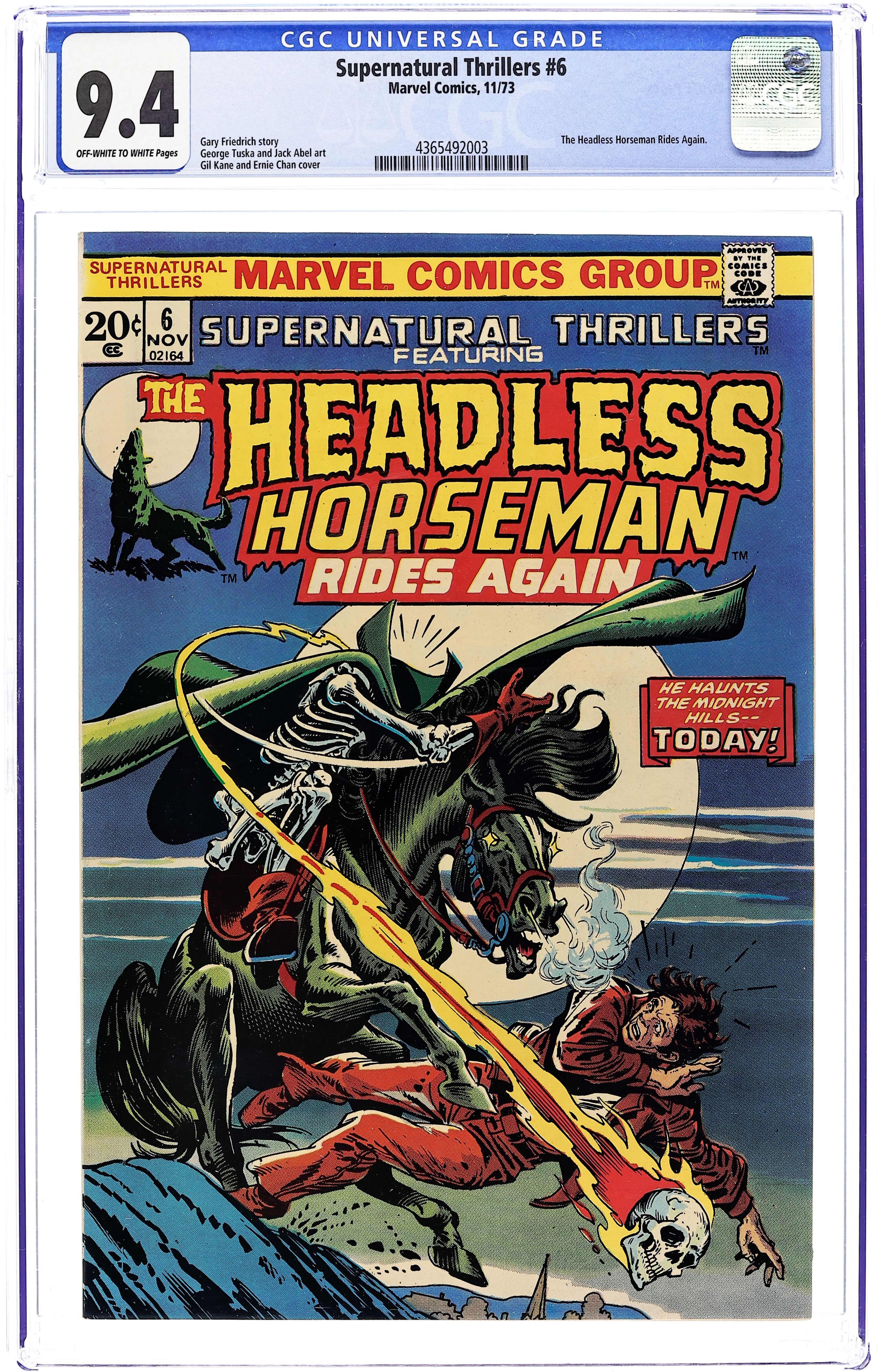 Starts Mar 23 Cover pencils by Gil Kane, inks by Ernie Chan. The Headless Horseman Rides Again!, script by Gary Friedrich, pencils by George Tuska, inks by Jack Abel; Duke Durbano discovers who killed his friend Matt Carter, and tracks down Bones Bullinger; But who is posing as the Headless Horseman? Information on how to join FOOM. 36 pgs. $0.20. Cover price $0.20.